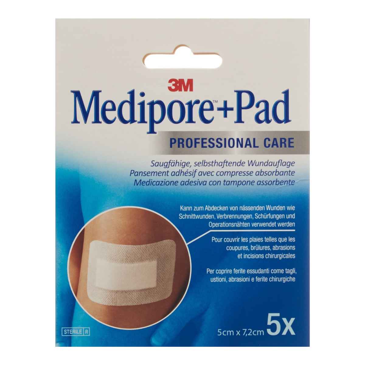 3M MEDIPORE+PAD 5x7.2cm Wundkissen 2.5x3.8cm 5 Stück