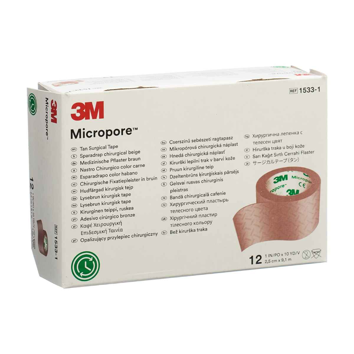 3M MICROPORE Rollenpflaster ohne Dispenser 25mmx9.14m hf 12 Stück