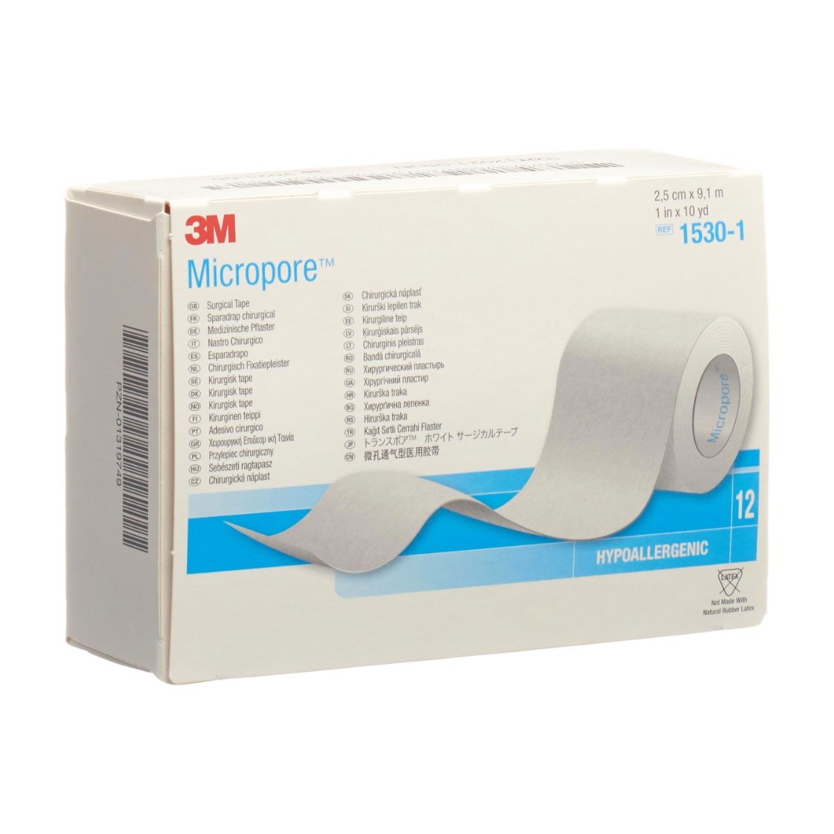 3M MICROPORE Rollenpflaster ohne Dispenser 25mmx9.1m weiss 12 Stück