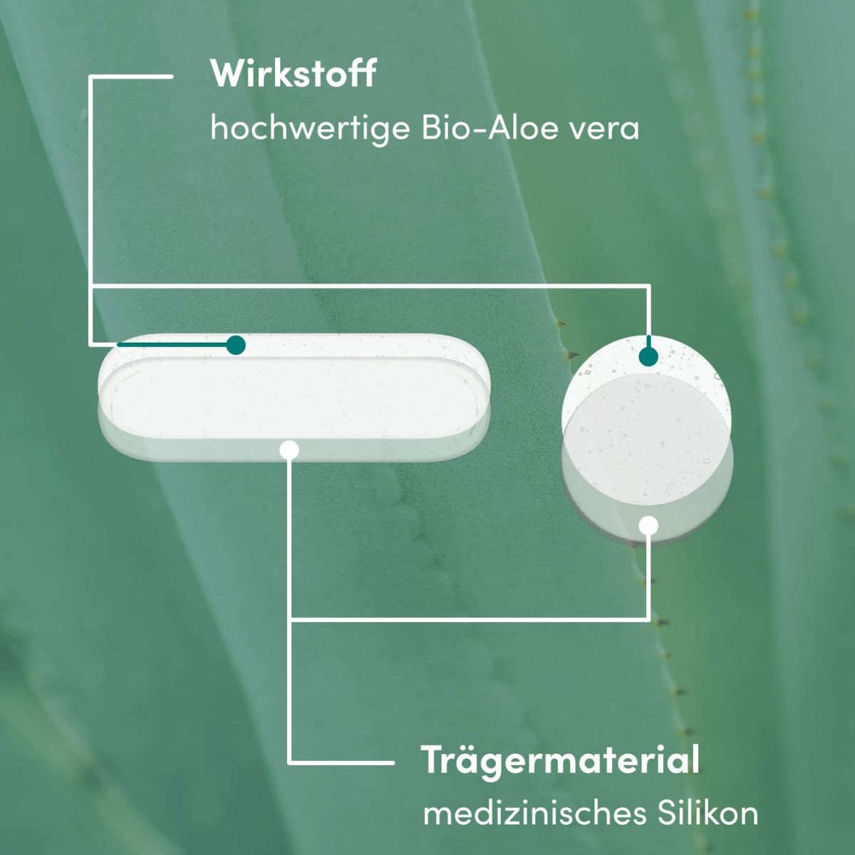 Gefertigt aus medizinischem Silikon, bildet das Narbenpad ein schützendes Mikroklima auf der Haut. Dieses kann die Feuchtigkeitsbalance unterstützen und die Haut geschmeidiger erscheinen lassen. Aloe Vera wirkt zusätzlich beruhigend und pflegend, wodurch sich das Produkt besonders für empfindliche Haut eignet.