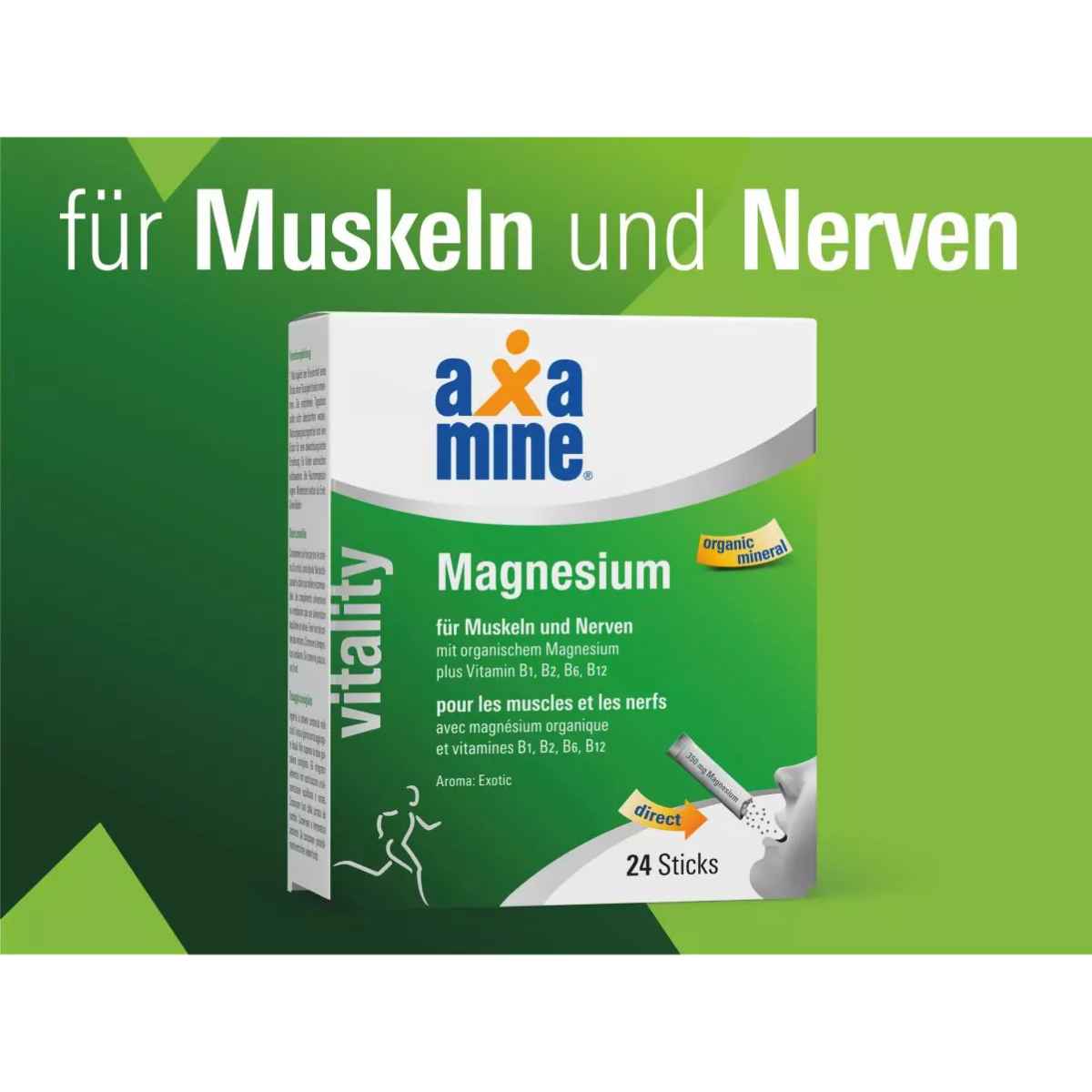 Axamine Vitality Magnesium Sticks enthalten Magnesium-Oxid und organisches Magnesium Citrat. Ergänzt wird die für Muskeln und Nerven abgestimmte Formulierung durch B-Vitamine.