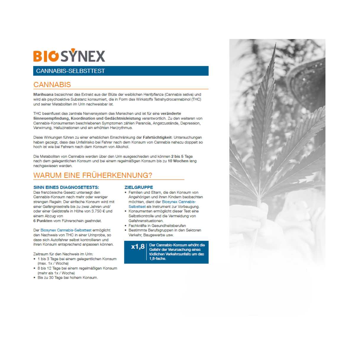 Der Biosynex Cannabis Selbsttest ist ein einfach anzuwendender Urintest zum Nachweis von THC (Tetrahydrocannabinol), dem psychoaktiven Wirkstoff von Cannabis. Der Test liefert innerhalb weniger Minuten ein zuverlässiges Ergebnis – ideal für den privaten Gebrauch zur Eigenkontrolle oder zur Vorbereitung auf Drogentests.