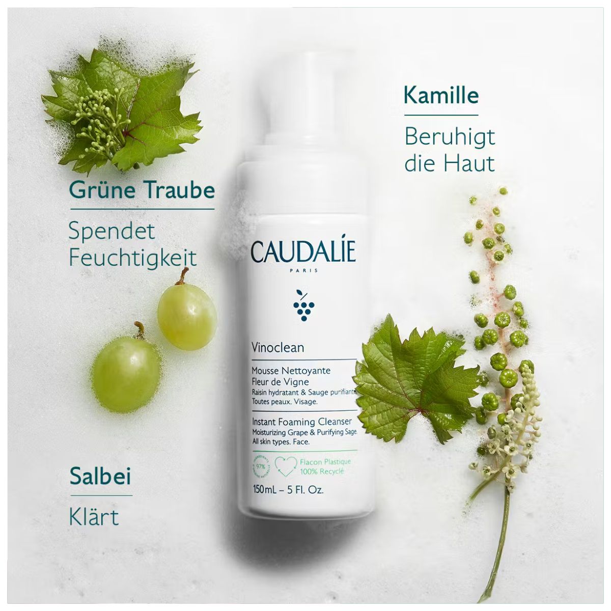 Caudalie Vinoclean Reinigungsschaum – Foaming Cleanser für alle Hauttypen