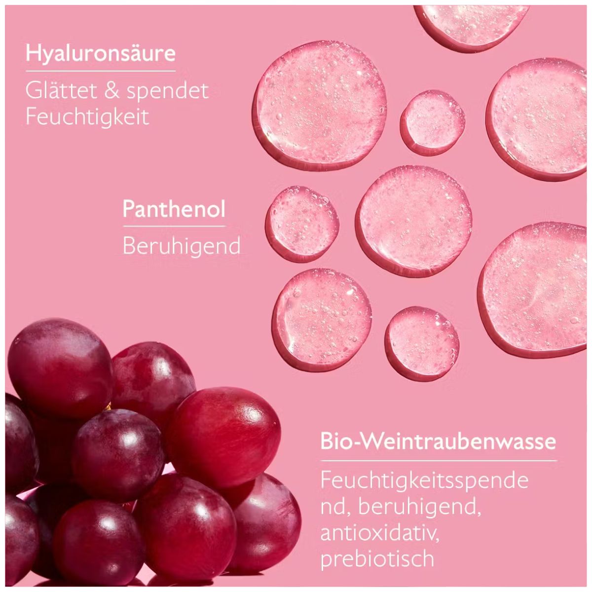 - Feuchtigkeitsspendend – durch Bio‑Weintraubenwasser & Hyaluron