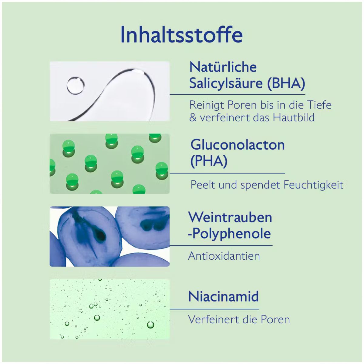 Die innovative Formel kombiniert natürliche Salicylsäure (BHA) mit Niacinamid und Gluconolacton (PHA). Diese Wirkstoffkombination sorgt für eine porentiefe Reinigung, reguliert die Talgproduktion und verbessert nachhaltig das Hautbild – ohne die Haut auszutrocknen.
