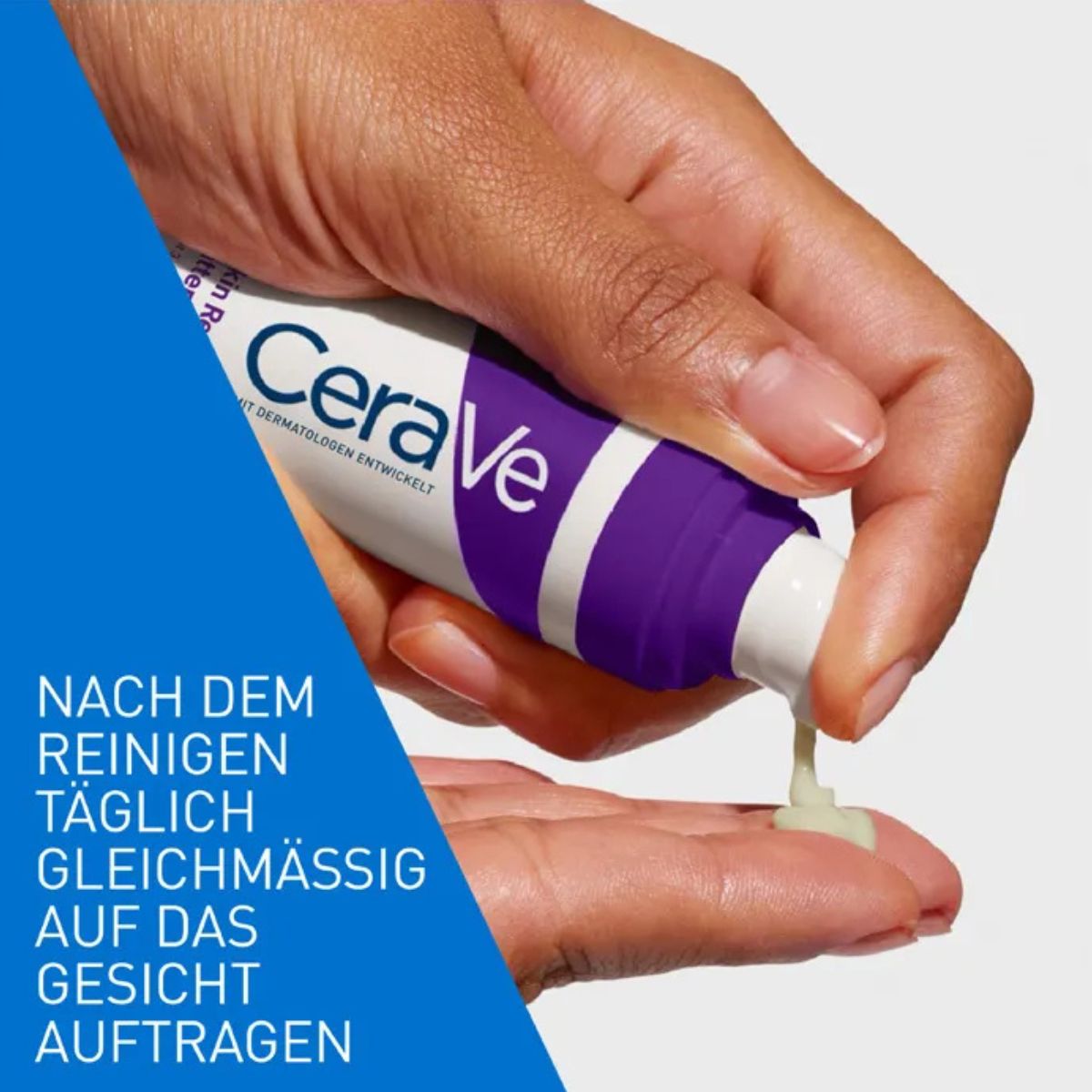 CeraVe Skin Renewing Glättendes Serum wird als Teil der Abendroutine nach der Gesichtsreinigung aufgetragen. Das Gesichtsserum in kleinen Punkten auf dem Gesicht verteilen und sanft in die Haut einmassieren, bis es eingezogen ist.