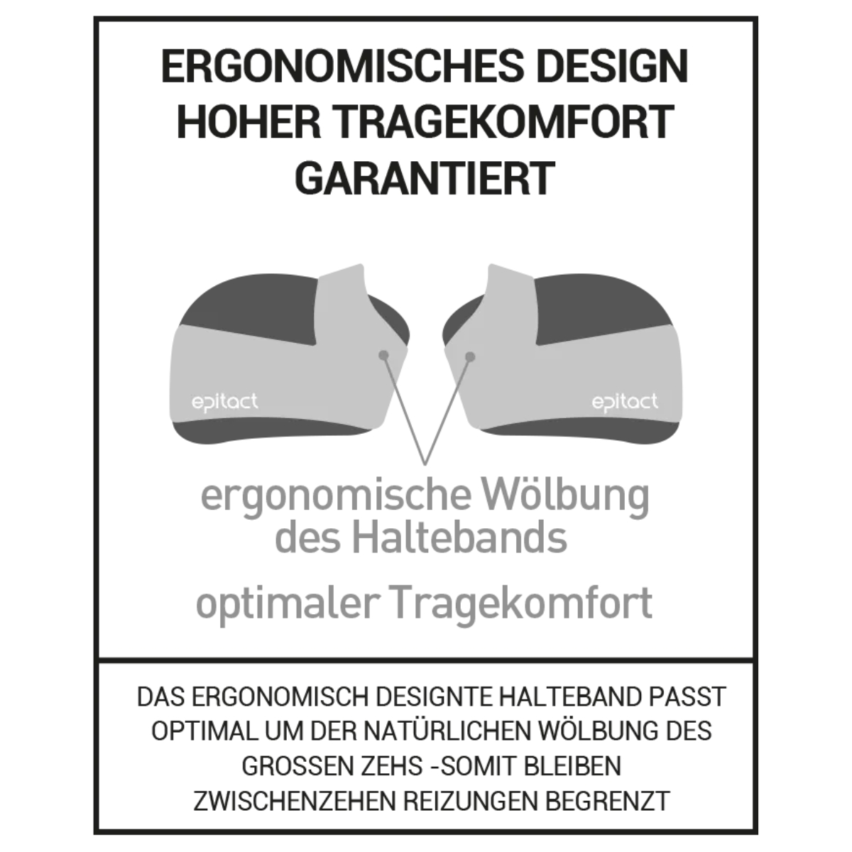 Das ergonomisch designte Halteband passt optimal um der natürlichen Wölbung des grossen Zehs und bietet hohen Tragekomfort.