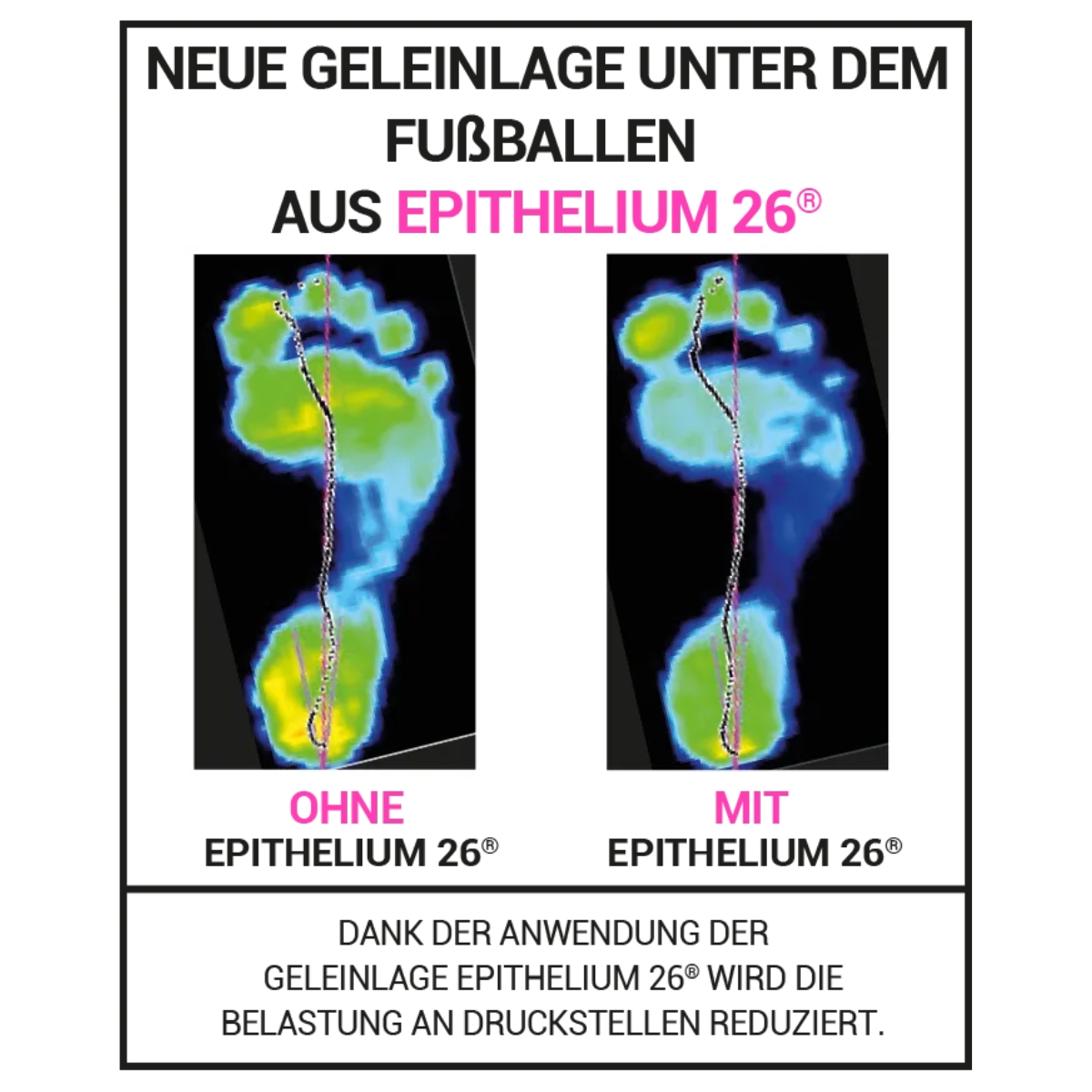Die Einlage aus Silikongel EPITHELIUM 26® mit Perlenrelief sichert dem Fussballen hohen Komfort und Druckentlastung.