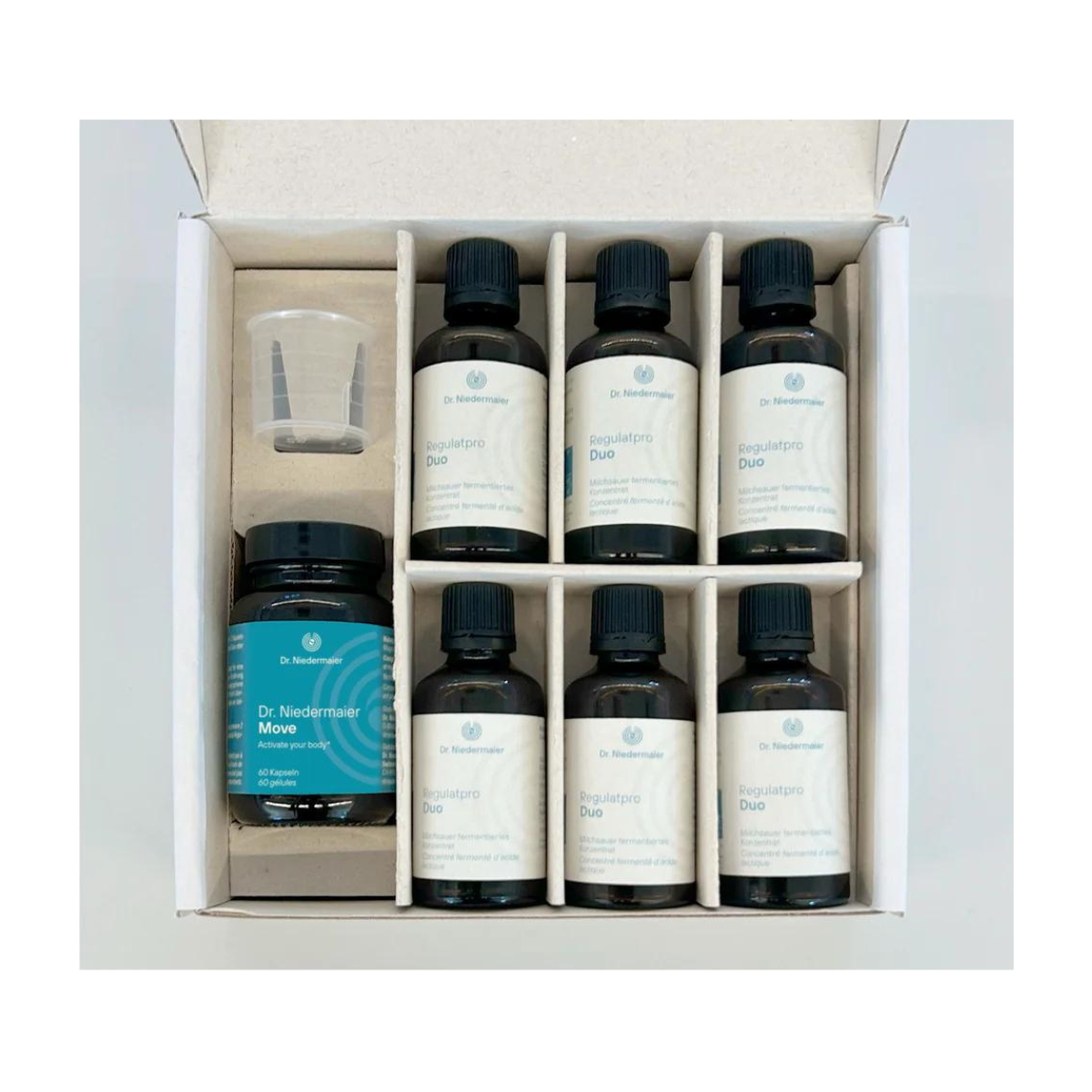 Dr. Niedermaier Move - das ganzheitliche 2-Phasen-Konzept aus fermentiertem Konzentrat und perfekt abgestimmten Nährstoffkomplex-Kapseln.