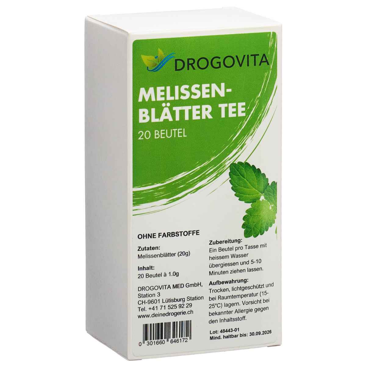 Geniessen Sie mit Drogovita Melissen Tee die beruhigende Kraft der Melisse. Dieser wohltuende Kräutertee hilft, Stress abzubauen, unterstützt einen erholsamen Schlaf und fördert das allgemeine Wohlbefinden – ideal für entspannte Momente im Alltag.