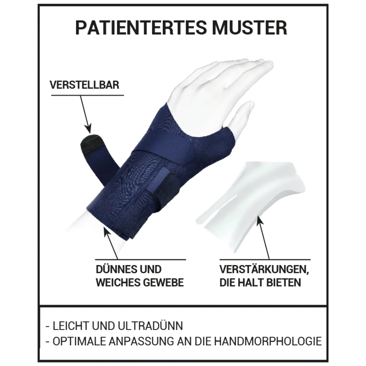 Entgegen einer gängigen Meinung ruht das Handgelenk in der Nacht nicht, es wird vielmehr dazu verwendet, das Kissen zurechtzurücken, sich im Bett umzudrehen etc. Dies erhöht den Druck im Karpaltunnel und verursacht Schmerzen. CARP' IMMO® hält das Handgelenk in einer neutralen Stellung, um ruhige Nächte und einen erholsamen Schlaf zu ermöglichen.