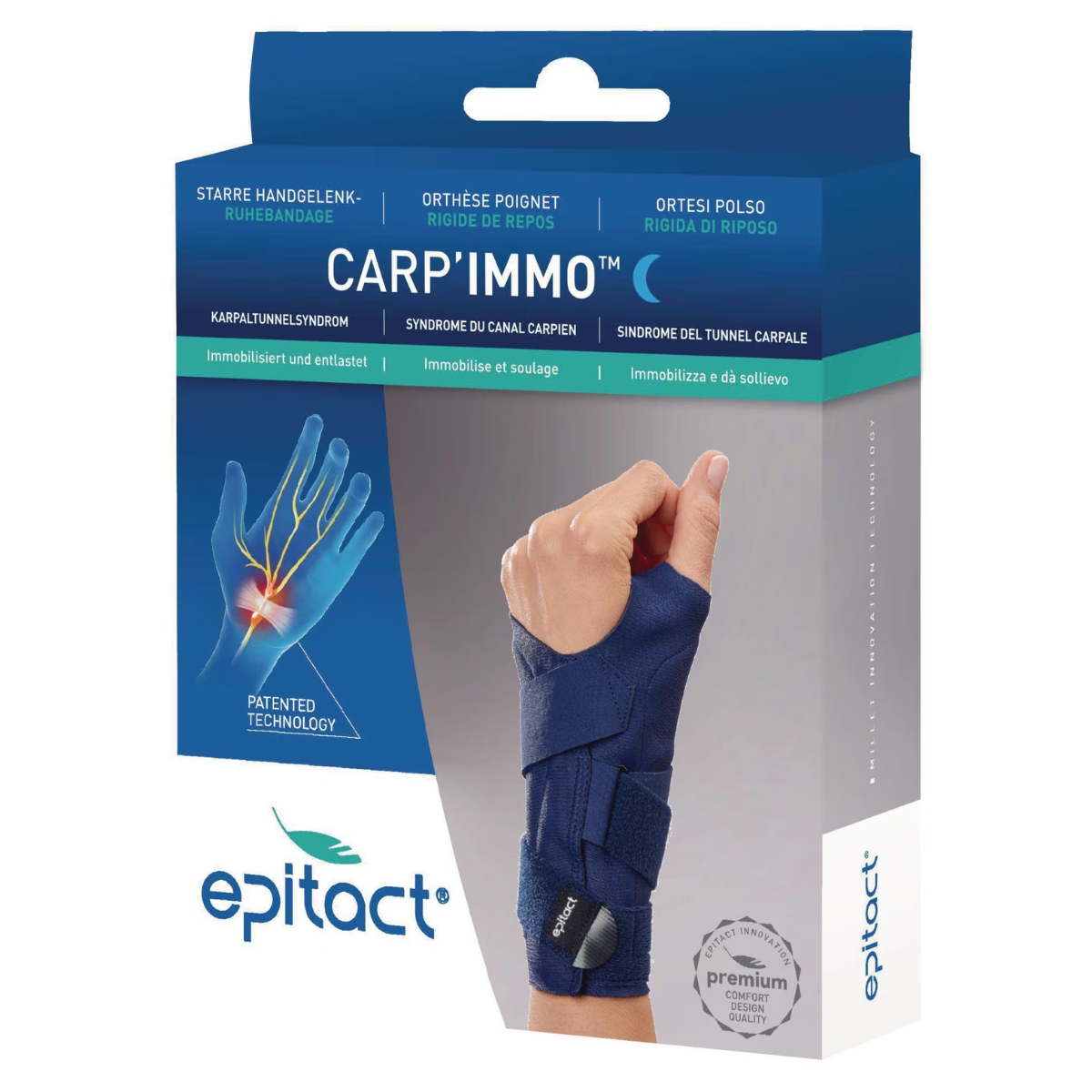 Mit carp’activ® hat EPITACT® eine alltagstaugliche Orthese entwickelt, die das Handgelenk bei Ihren täglichen Aktivitäten unterstützt. Ideal, wenn Sie am Karpaltunnelsyndrom leiden.- Ultradünn- Maschinenwäsche bei 30 °C- kombinierbar mit der steifen Nachtorthese- Extrem leicht- als Einzelstück verkauft- erhältlich für die linke bzw. rechte Hand zur Auswahl Durch die Begrenzung des Bewegungsradius des Handgelenks sowie von gefährlichen Fehlstellungen der Hand, die das Karpaltunnelsyndrom begünstigen, trägt die Handgelenkbandage CARP’activ® dazu bei, dass Sie Ihren Alltagsaktivitäten wieder ohne Bedenken nachgehen können. Die weiche, dünne und diskrete Orthese wurde dazu entwickelt, die Bewegungen Ihres Handgelenks zu begleiten und Ihre Finger gleichzeitig beweglich zu halten.Grössen (Handgelenkumfang):S 17-19cm M 19-21.5cm L 21.5 - 24cm