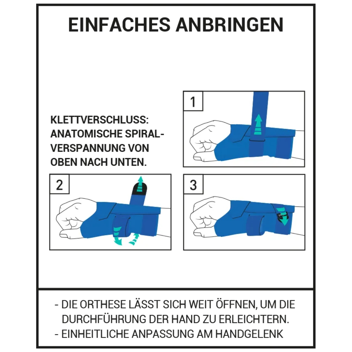Nachts sowie in allen Situationen, in denen Sie Ihre Hand nicht benutzen, wird das regelmässige Tragen der CARP’IMMO-Ruheorthese bei Karpaltunnelsyndrom, Erkrankungen des Bewegungsapparats, Entzündungen oder Sehnenscheidenentzündungen am Handgelenk empfohlen.