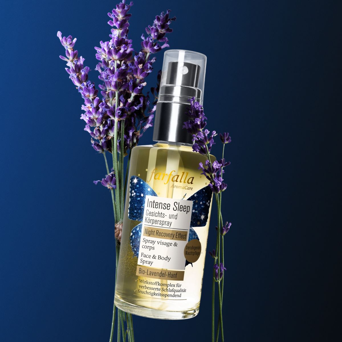 Das Farfalla Gesichts- und Körperspray Intense Sleep ist eine innovative Nachtpflege mit Zweifachwirkung, die sowohl Körper als auch Haut optimal auf die nächtliche Regeneration vorbereitet. Die einzigartige Kombination aus Aromatherapie und Hautpflege unterstützt einen erholsamen Schlaf und sorgt für eine sichtbar frischere Ausstrahlung am Morgen.