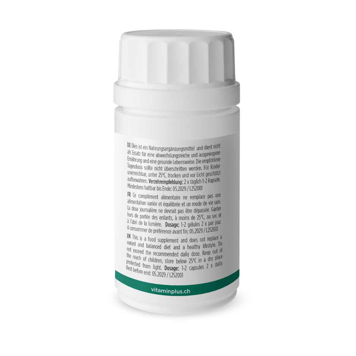 Dies ist ein Nahrungsergänzungsmittel und dient nicht als Ersatz für eine abwechslungsreiche und ausgewogene Ernährung und eine gesunde Lebensweise. Die empfohlene Tagesdosis sollte nicht überschritten werden. Für Kinder unerreichbar, unter 25°C, trocken und vor Licht geschützt aufbewahren.