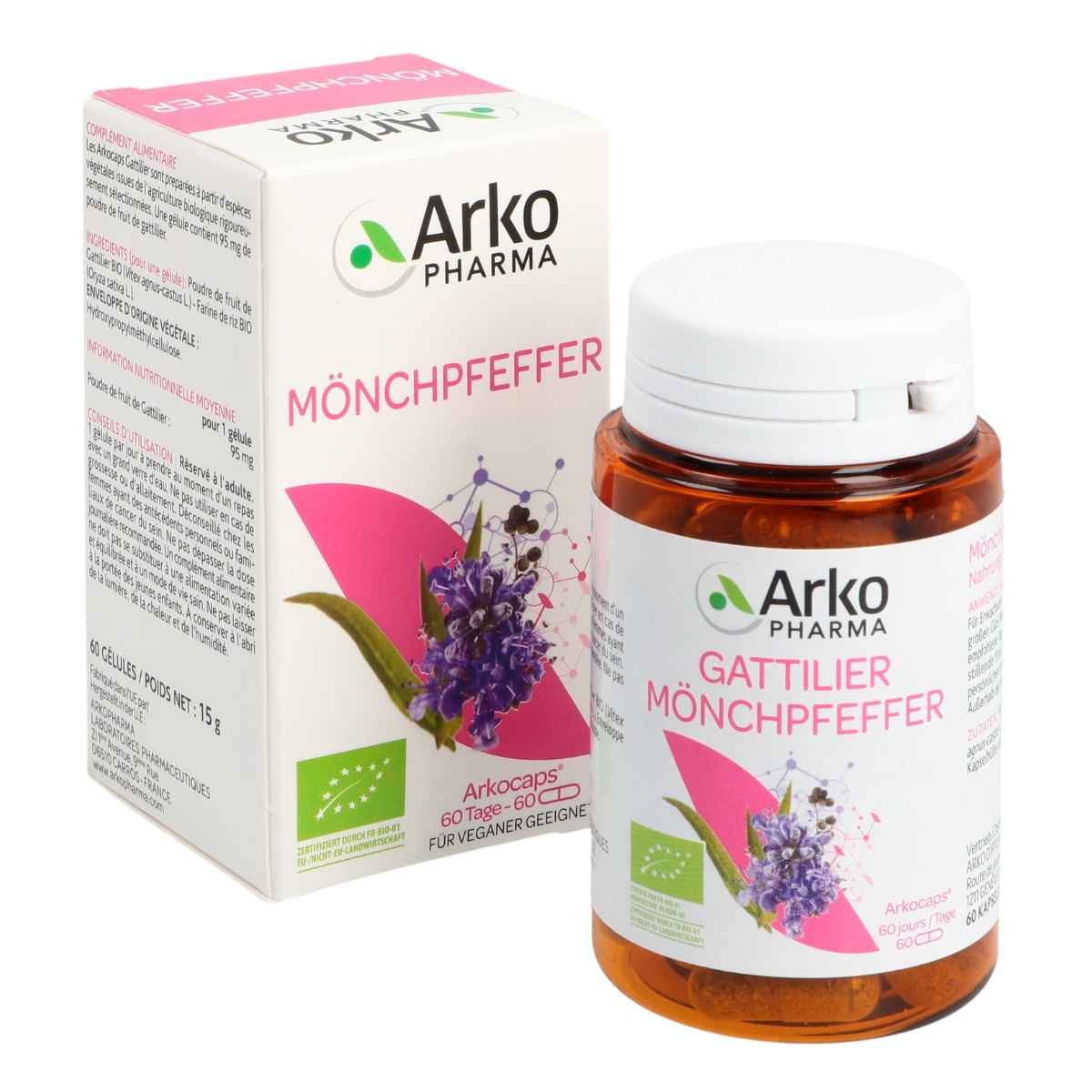 Arkopharma gélules de poivre des moines (gattilier) comme complément alimentaire. Le poivre des moines est utilisé depuis des milliers d'années comme plante médicinale. Le domaine d'application du fruit du poivre des moines se réfère aujourd'hui principalement à la médecine féminine.
