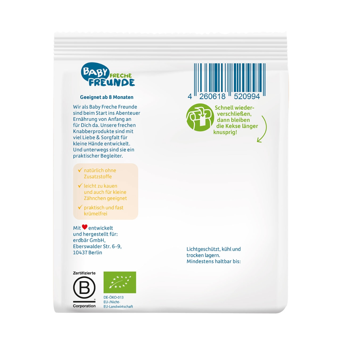 Idéal pour les petits fans de biscuits à la banane. Grâce à sa forme maniable & à son emballage refermable, le biscuit pour bébé est le compagnon idéal pour les déplacements.