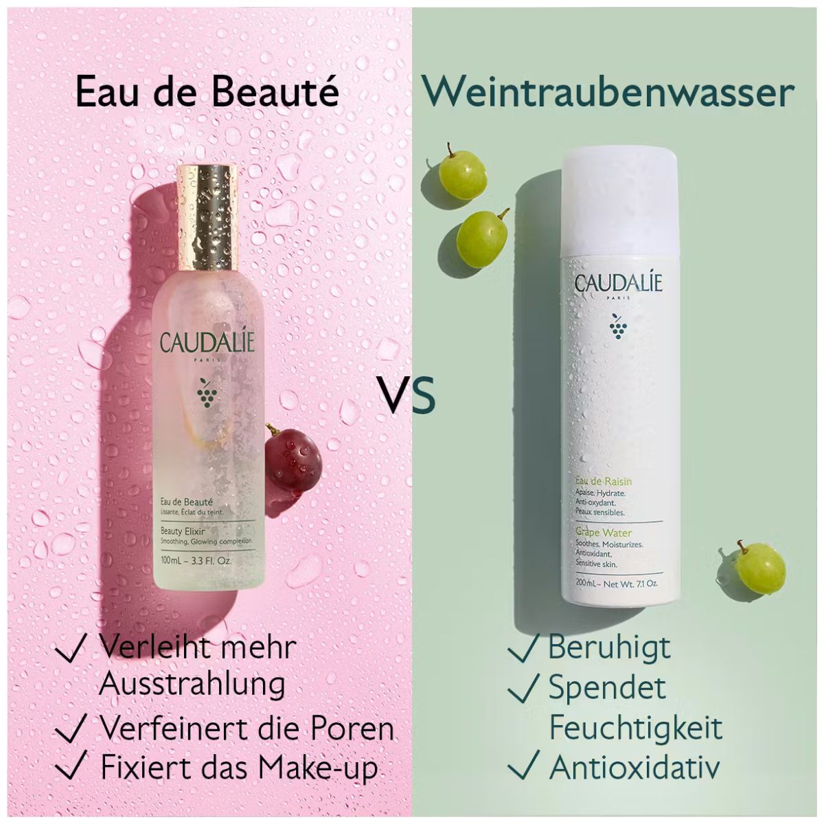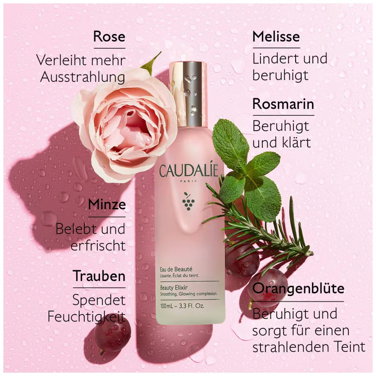 - Mit natürlichen Extrakten aus Weintrauben, Rose & Rosmarin.