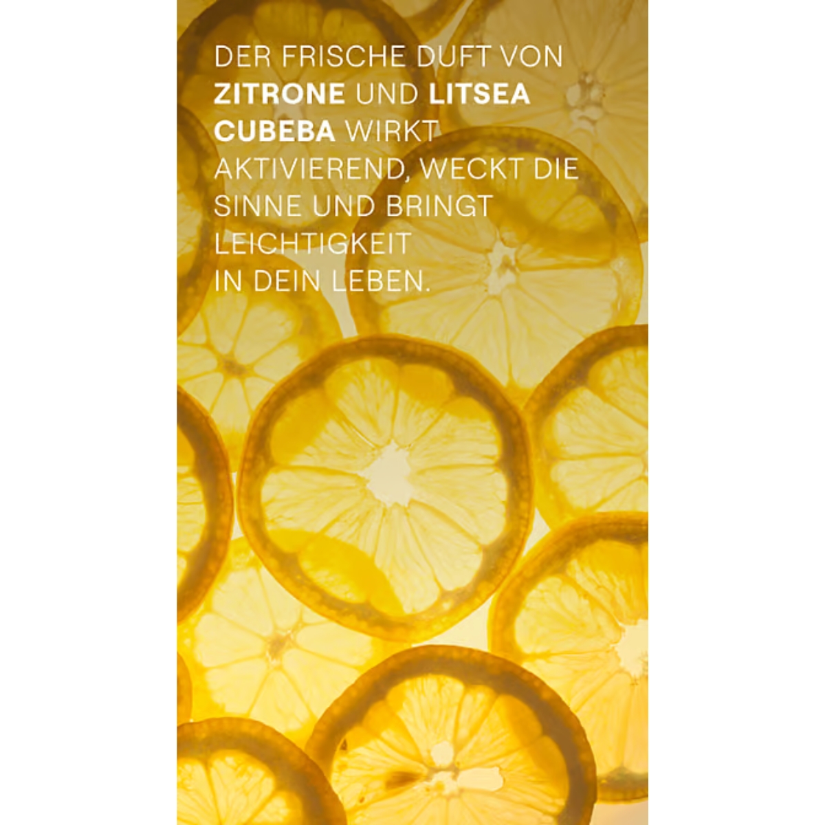 Avec la douche rafraîchissante Refresh Citrus, tu offres à ton corps et à ton esprit une nouvelle énergie et à ta peau une expérience de douche délicatement traitante. Le parfum de citron bio et de litsea cubeba fraîche a un effet activant, éveille les sens et apporte de la légèreté dans la vie.