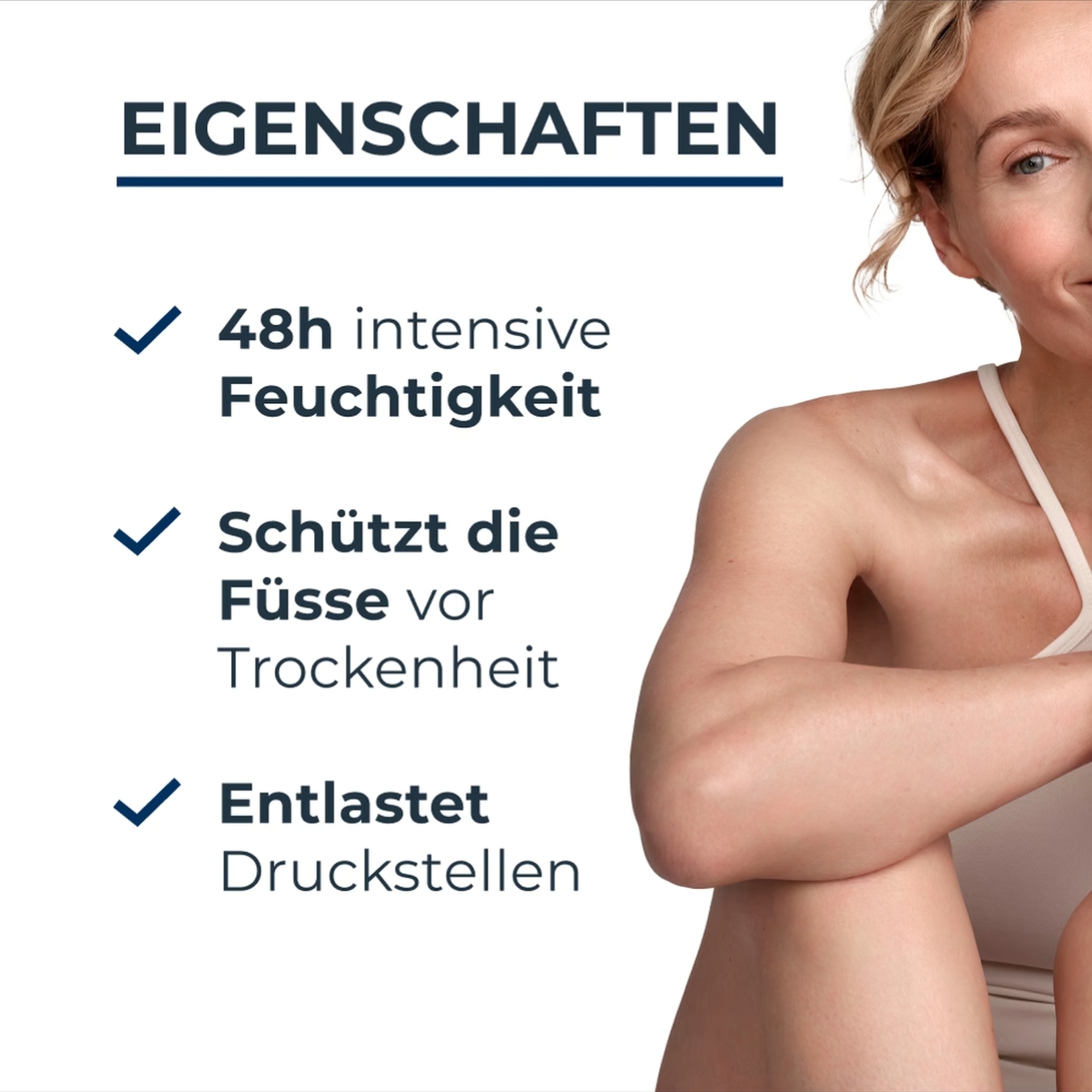 Soulage immédiatement les symptômes typiques des pieds secs, rugueux et crevassés - pendant 48h. Pour une peau agréablement lisse et souple.