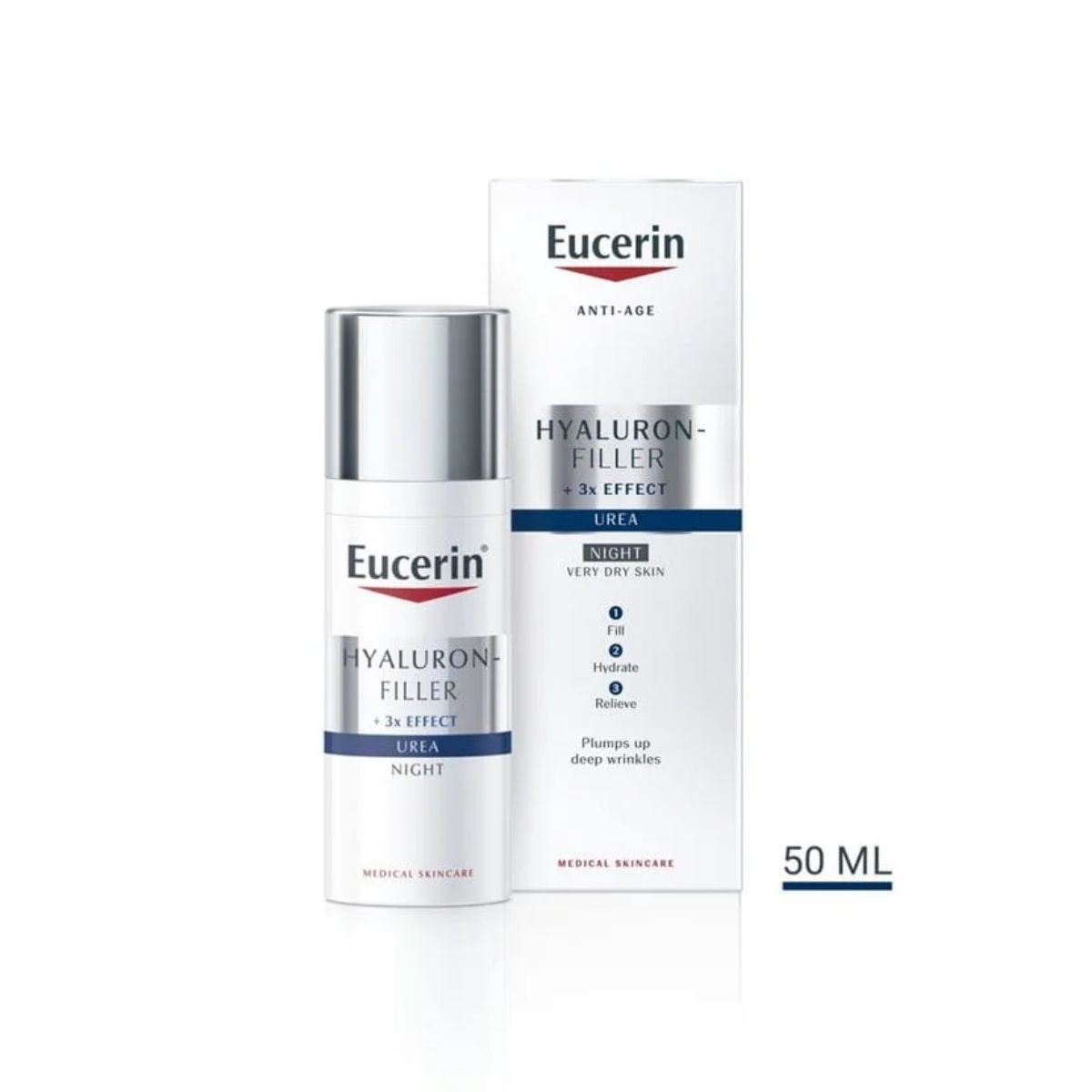 - Description Eucerin soin de nuit anti-rides pour peau sèche Eucerin HYALURON-FILLER + urée soin de nuit hydrate intensément .Le soin de… Plus