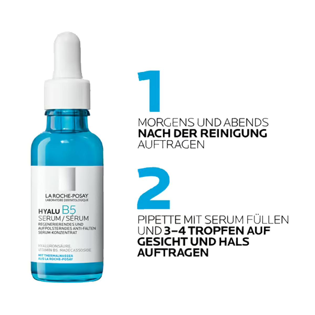 Appliquer matin et/ou soir sur le visage, le cou et le décolleté. La texture légère du sérum concentré Hyalu B5 convient à tous les types de peau et s'intègre parfaitement dans votre routine de soins, entre le nettoyage et le soin. Forte efficacité anti-âge pour tout type de peau sensible.