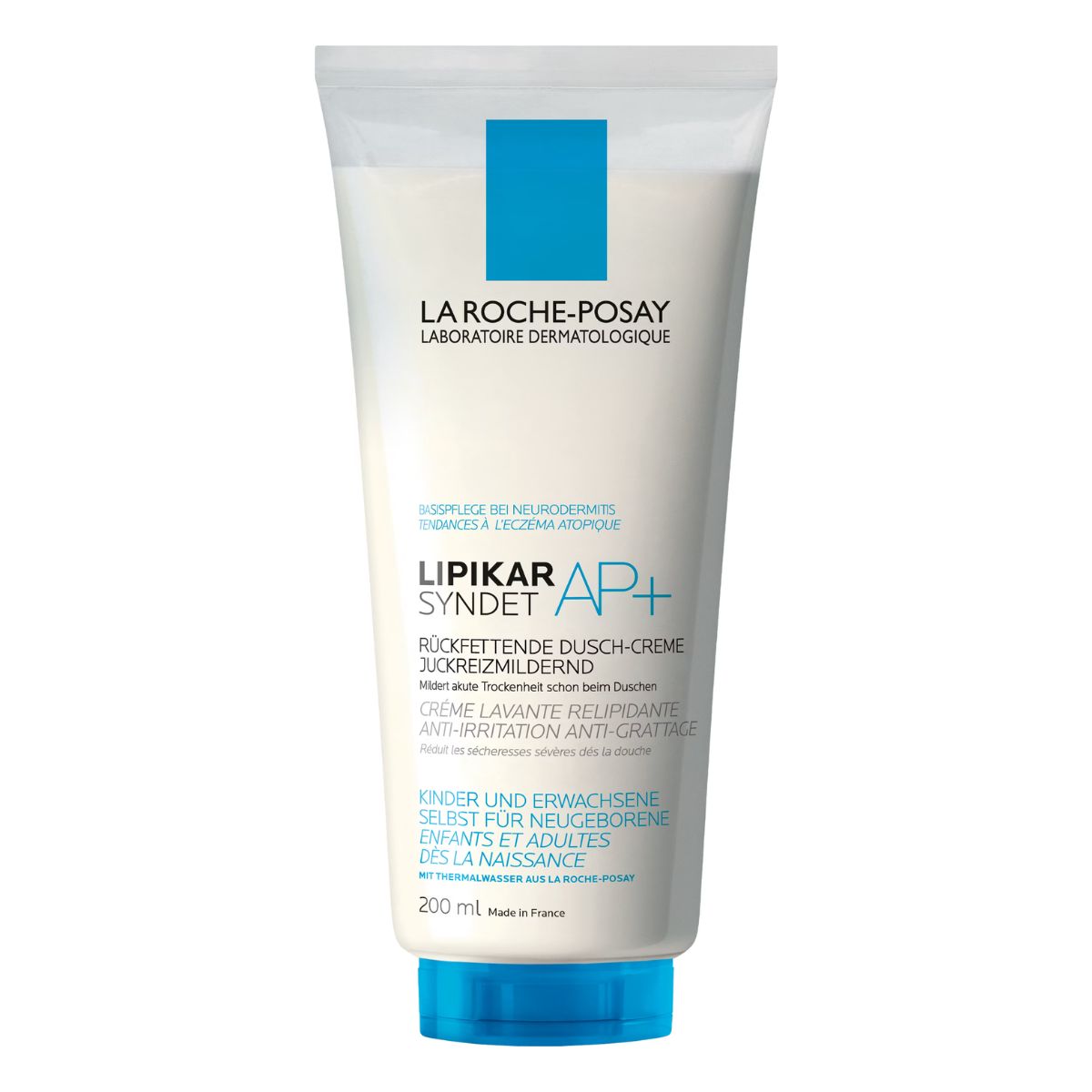 Lipikar SYNDET AP+ est une crème de douche pour les nouveau-nés, les bébés, les enfants et les adultes ayant une peau atopique, à tendance atopique. Lipikar Syndet AP+ Crème de douche relipidante apaise immédiatement et atténue la sécheresse extrême dès la première douche.