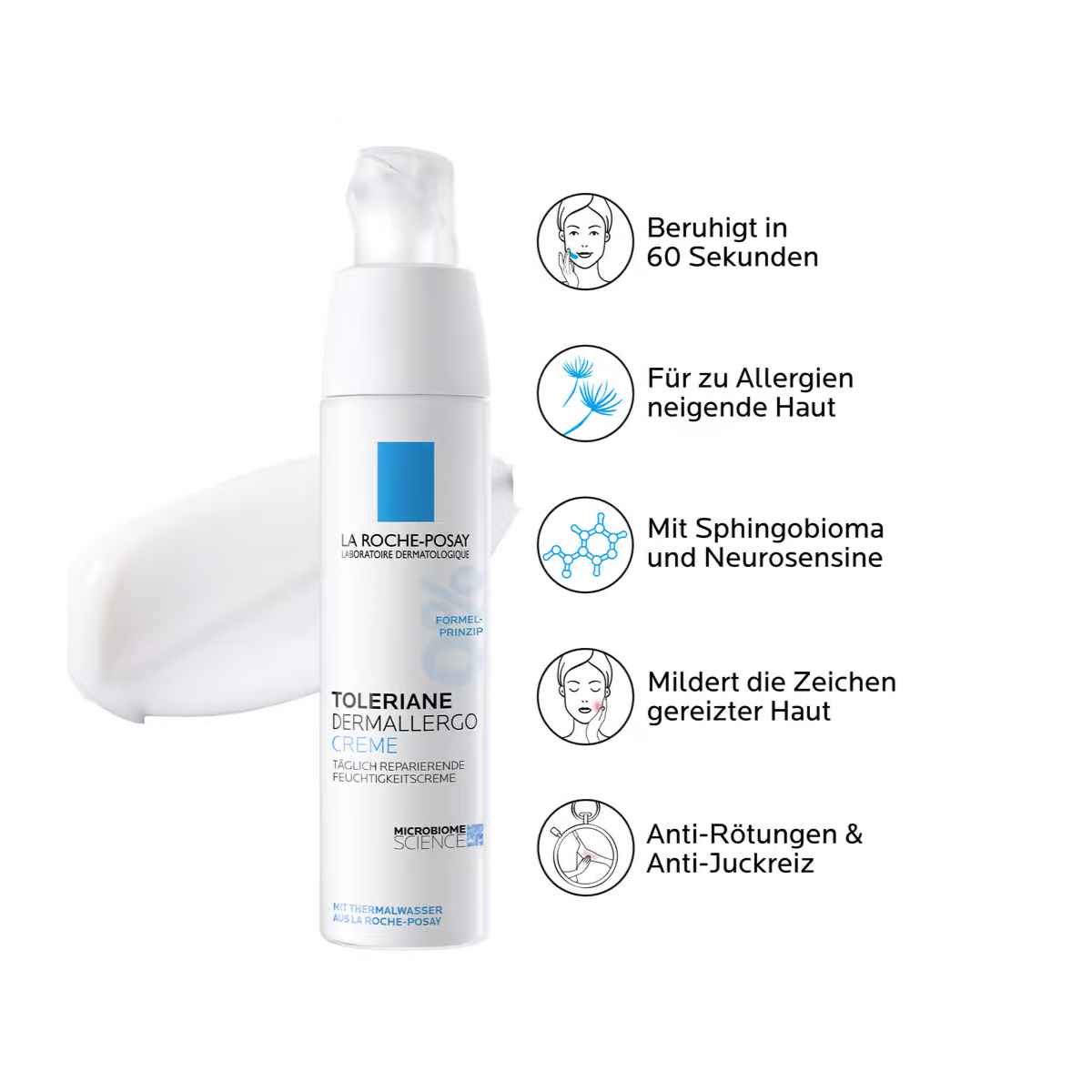 TOLERIANE Dermallergo hydrate immédiatement la peau et apaise les irritations cutanées. Ce soin léger lutte contre les rougeurs et les prévient durablement. Testé sur les peaux sujettes aux allergies. Formule testée sous contrôle dermatologique.