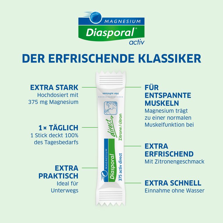 - Description Magnésium Diasporal Activ Direct Citron comme complément alimentaire avec du magnésium. Le magnésium est indispensable pour… Plus