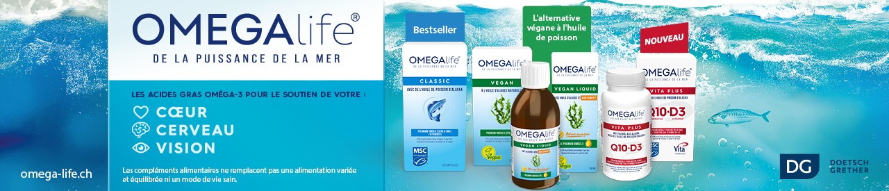 Les acides gras oméga-3 assurent de nombreuses fonctions importantes dans l'organisme. Entre autres, ils sont importants pour le cœur, la vision et la régulation de la pression artérielle. Comme le corps ne peut pas produire lui-même les acides gras insaturés en quantité suffisante, ils doivent être apportés par l'alimentation. Cependant, les personnes qui consomment rarement des produits d'origine animale comme le poisson courent le risque de développer une carence en acides gras oméga-3. Les signes possibles sont la baisse de la vue, le manque de concentration et l'hypertension. Pour ces cas, Omega-Life propose différents produits comme compléments alimentaires - également pour les personnes qui vivent de manière végétalienne.
