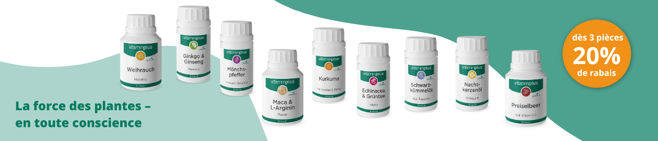 Les plantes et leurs racines ne sont pas seulement délicieuses en cuisine pour assaisonner et affiner les plats. Beaucoup d'entre elles contiennent, en plus des vitamines et des minéraux, d'autres ingrédients précieux comme les flavonoïdes ou les substances amères. Elles contiennent donc des compositions uniques de substances actives que l'on ne trouve que dans la nature. Ils aident les plantes à croître, à se défendre et à se protéger contre les parasites ou à communiquer avec le monde extérieur. Mais ces substances actives profitent aussi à l'homme et sont utilisées depuis toujours pour traiter différents troubles. Vitaminplus greenline utilise le pouvoir des plantes et les combine intelligemment.