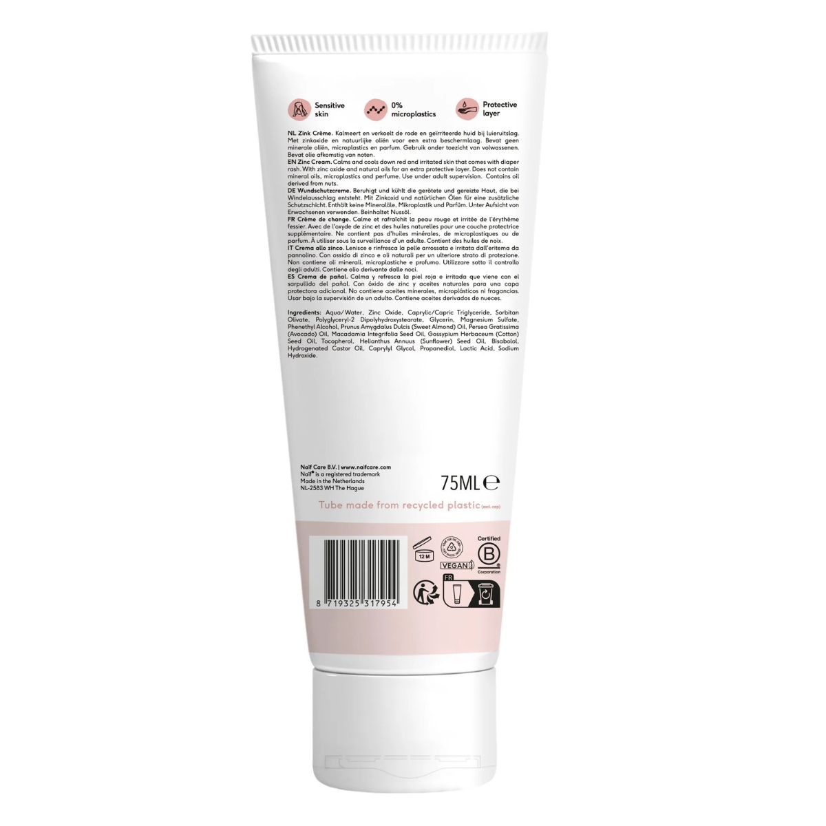 La crème au zinc pour les bébés et les enfants de Naif contient beaucoup d'oxyde de zinc, qui fournit à la peau une couche protectrice,