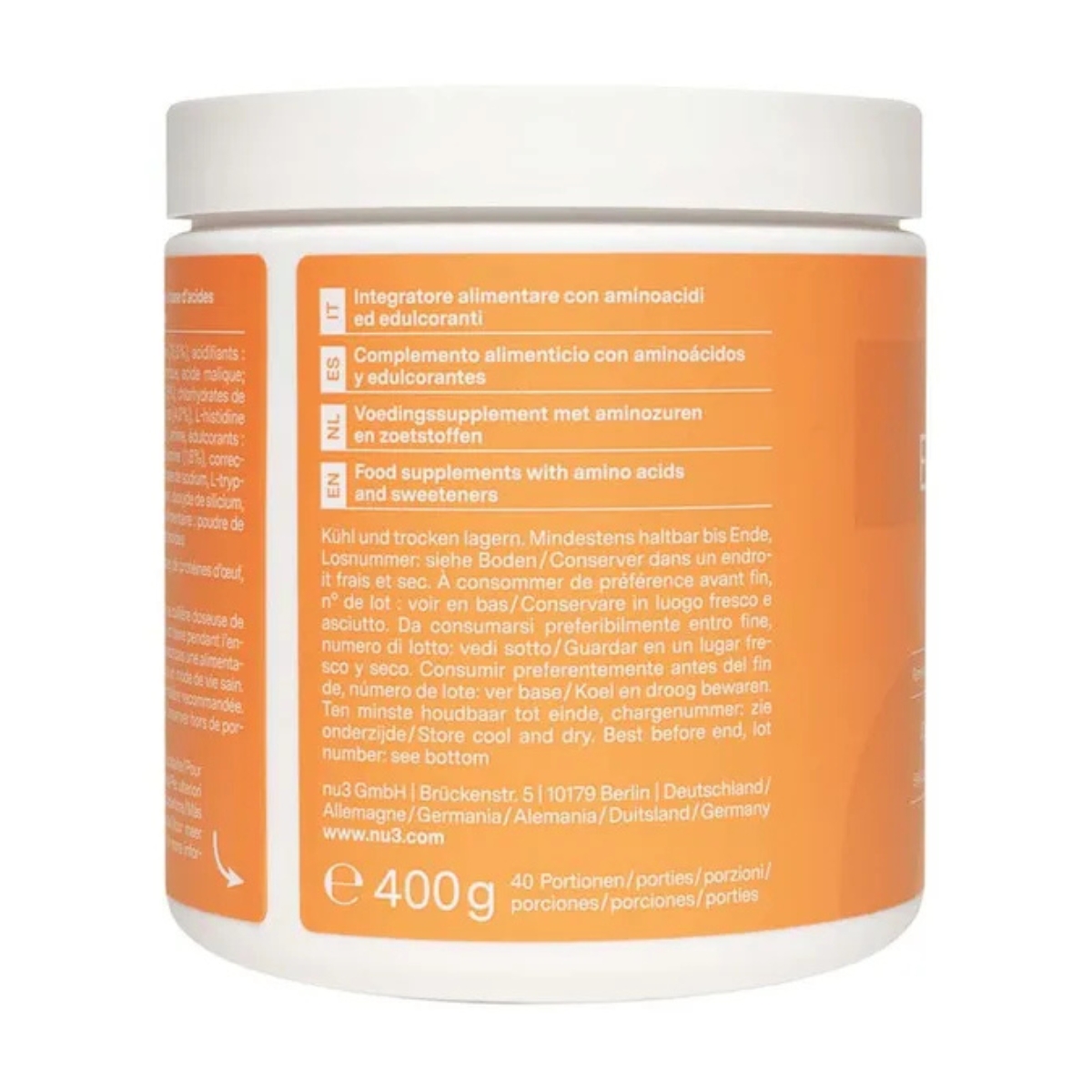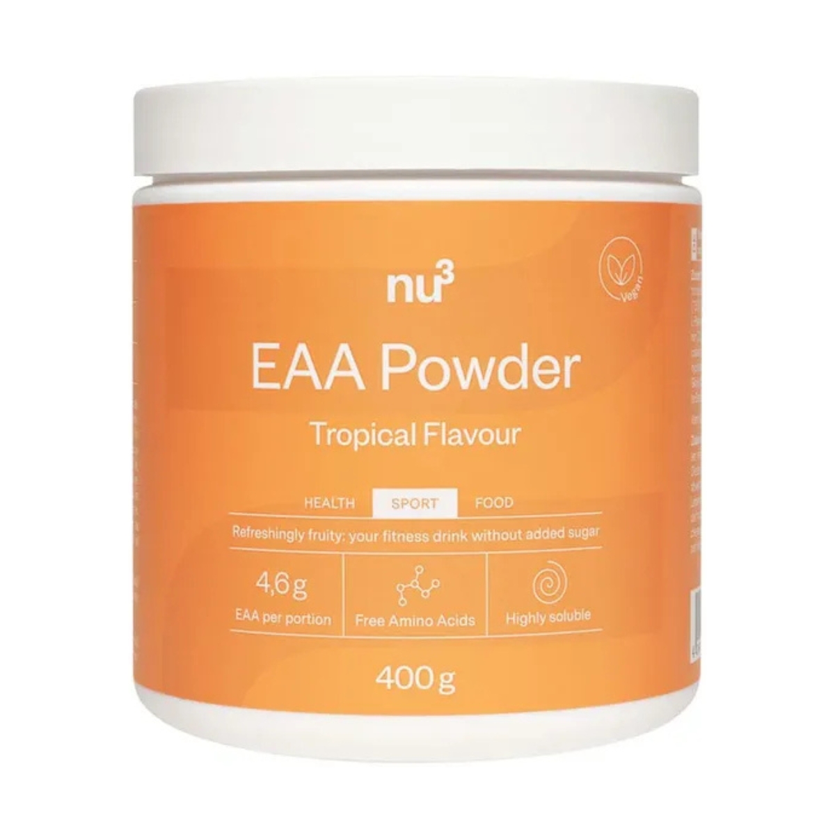 Nu3 EAA Powder - Les 8 acides aminés essentiels dans un seul produit. Poudre très soluble au goût tropical rafraîchissant.