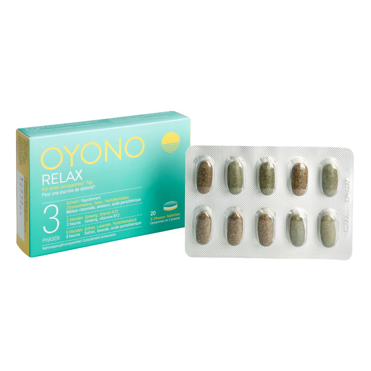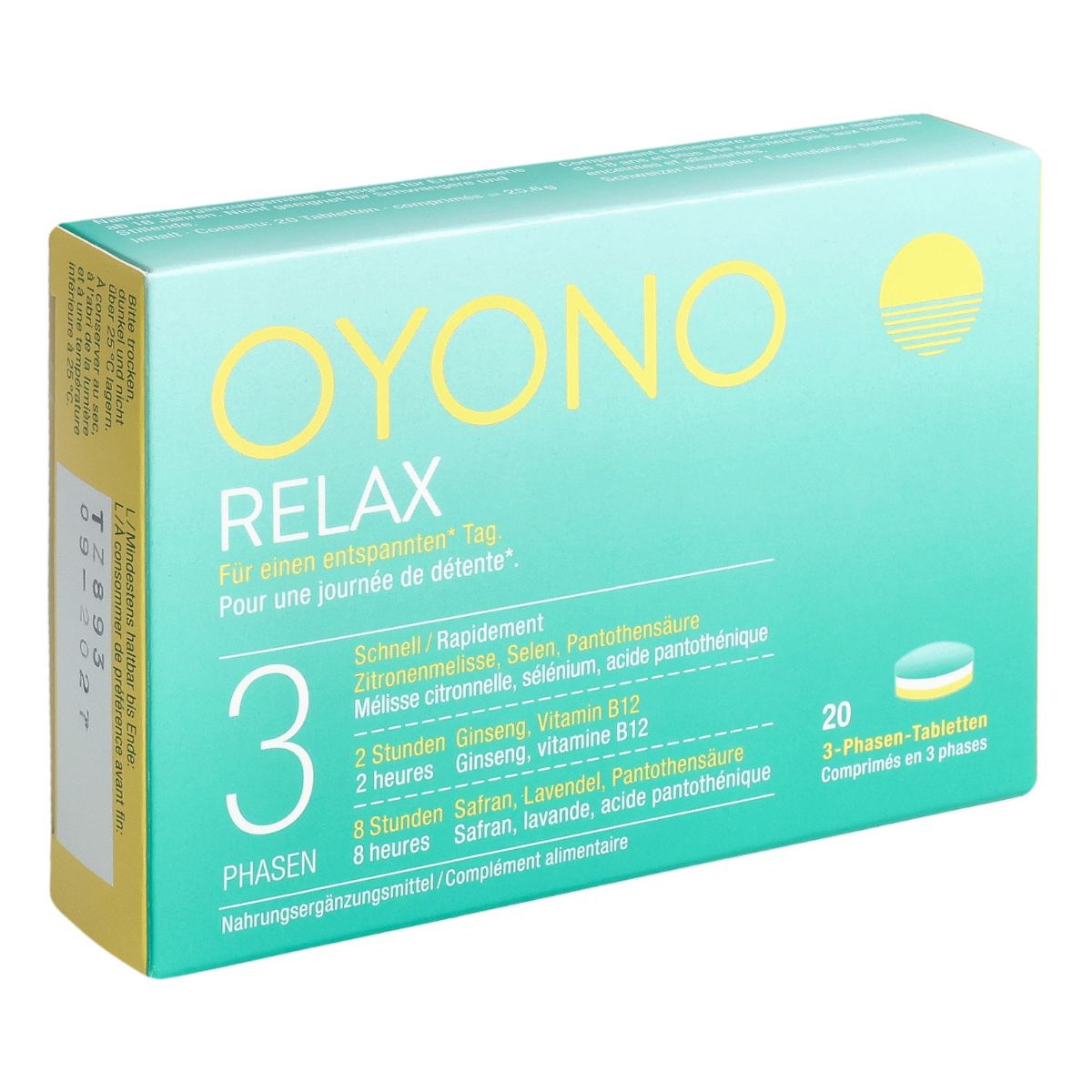 Les OYONO RELAX contiennent des extraits de plantes de mélisse citronnelle, de lavande et de ginseng, ainsi que de la vitamine B12 et du sélénium, un minéral.