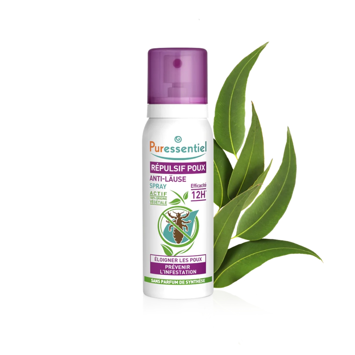 Le spray anti-poux Puressentiel a un effet préventif contre les infestations de poux.