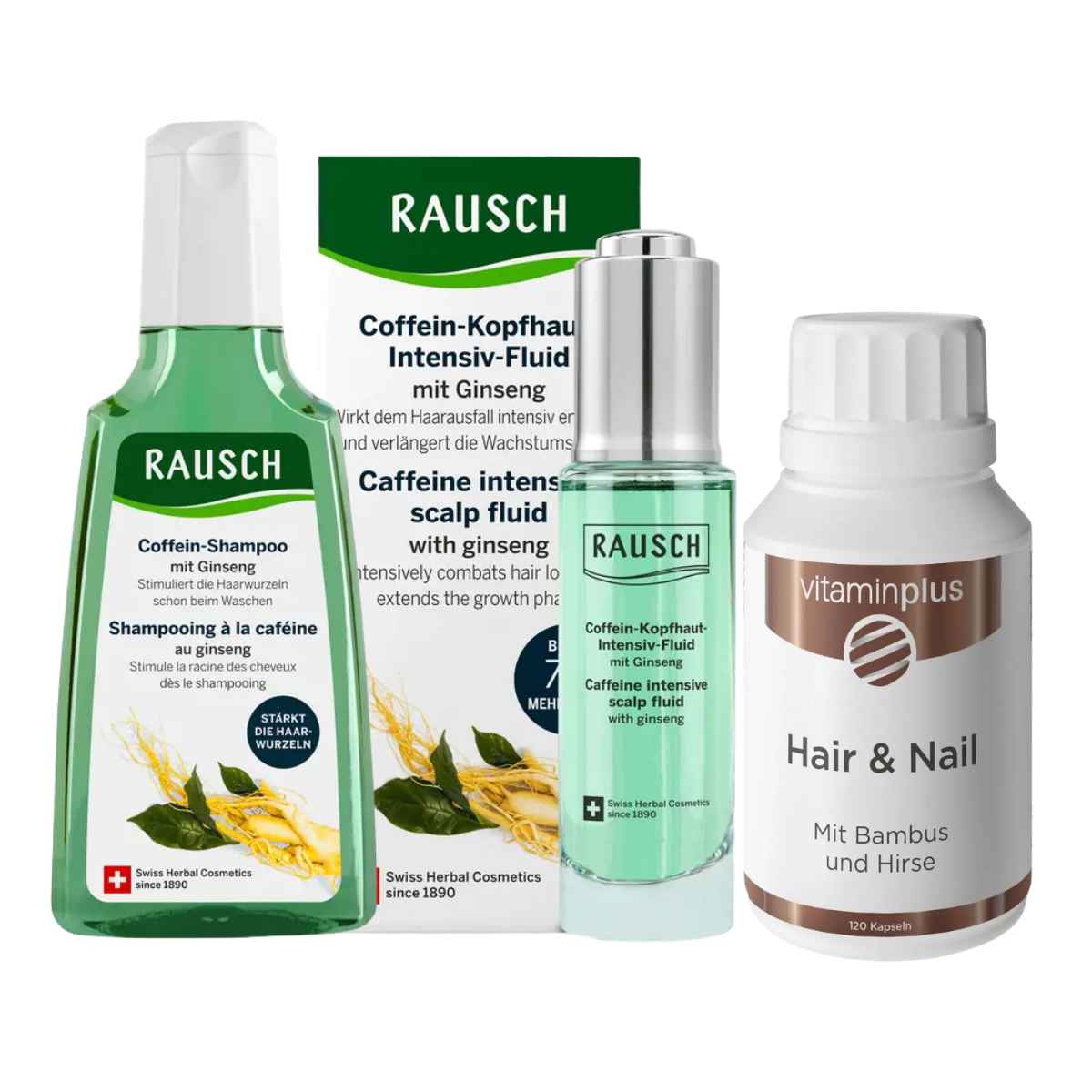Le kit Rausch Ginseng pour la croissance des cheveux contient :