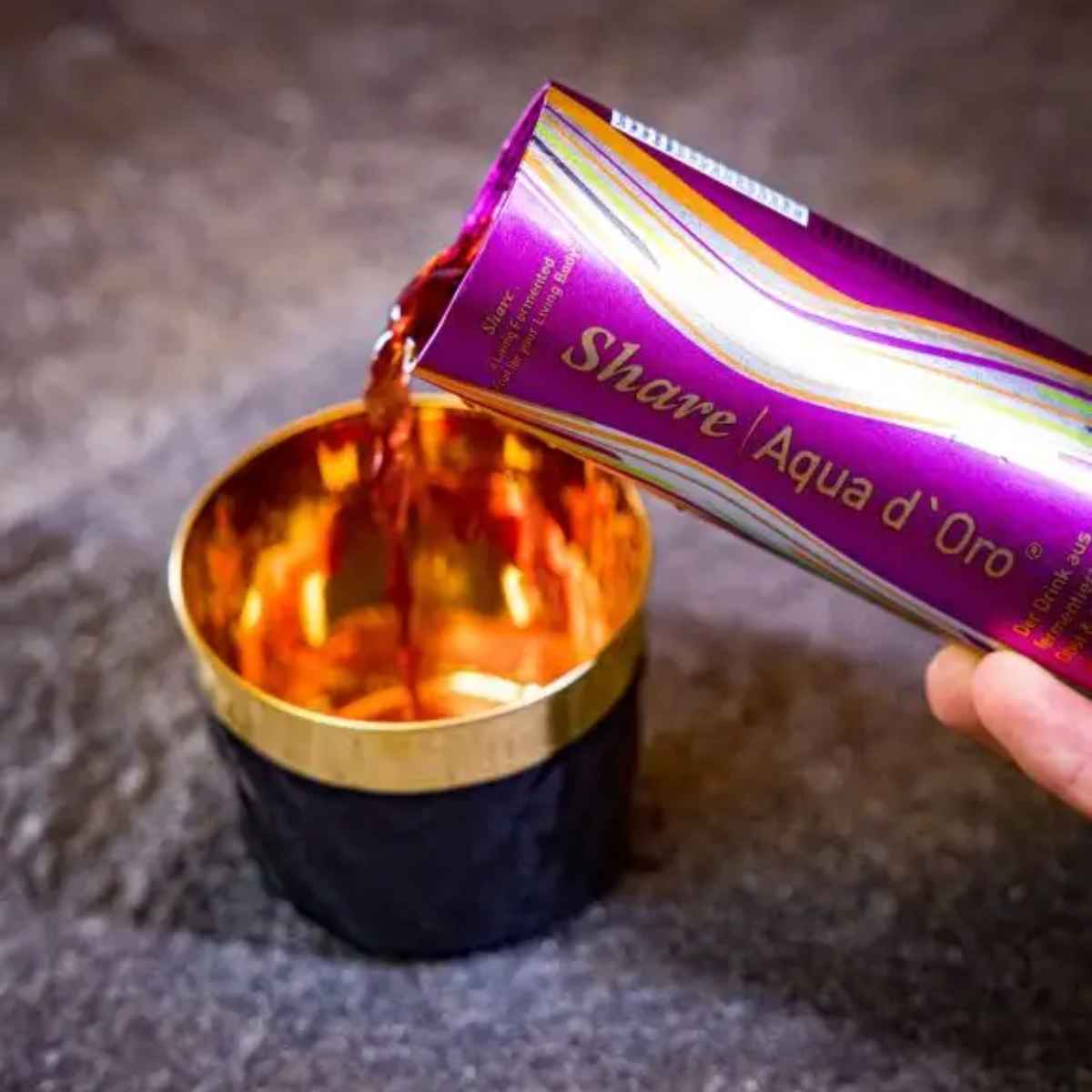 Share Aqua D'Oro® est une boisson vitalisante de haute qualité avec une combinaison unique de fruits fermentés, de baies, de plantes et de super-aliments. La recette soigneusement élaborée est basée sur les principes de la médecine traditionnelle chinoise (MTC) et soutient ton bien-être quotidien en douceur.