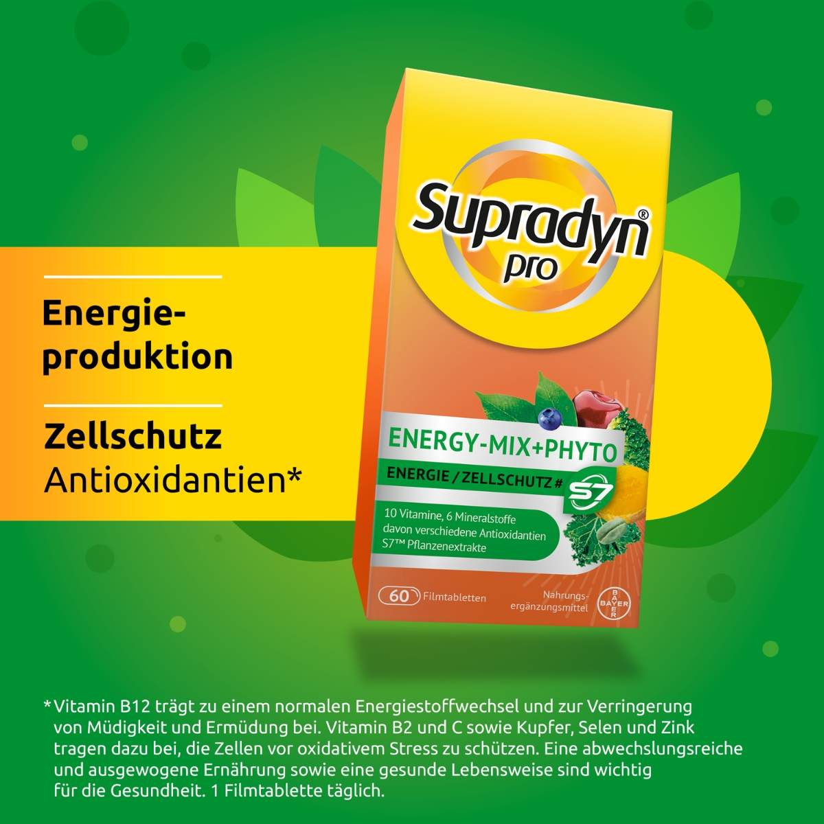 - Description Favorise la production d'énergie et la protection cellulaire.Les comprimés Supradyn pro energy-complex Phyto ont la teneur l… Plus