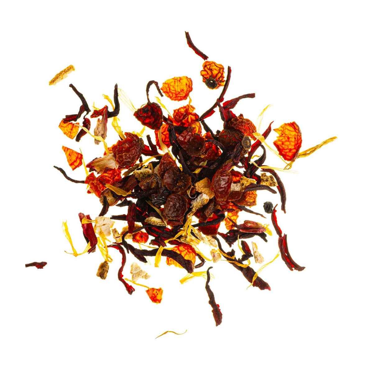 Hagebutte*, Hibiskus*, Orangenschalen*, Rote Beete*,