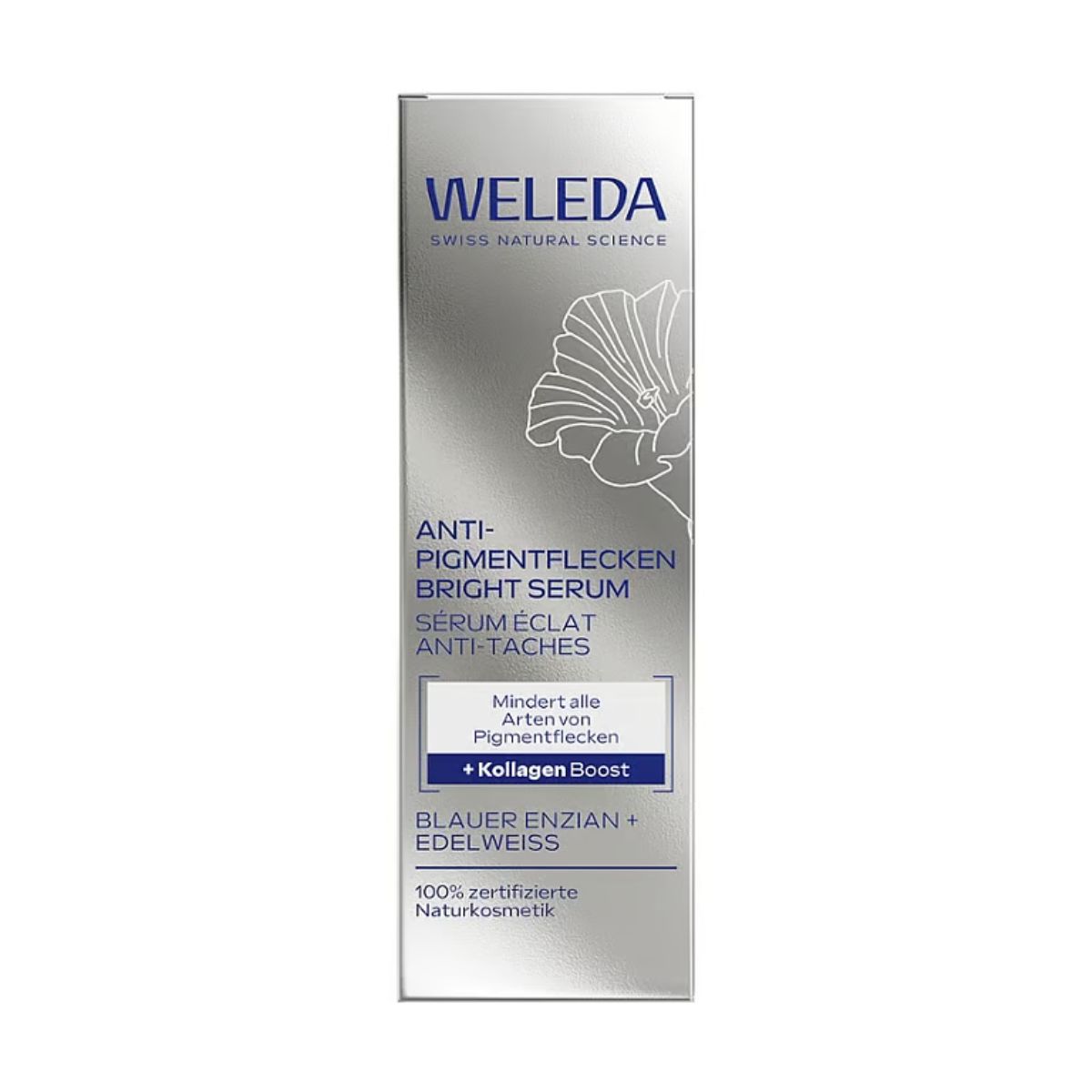 - Description Sérum Anti-Pigmentation Bright Weleda - à la gentiane bleue & à l'edelweiss Sérum végétal pour atténuer les taches de p… Plus