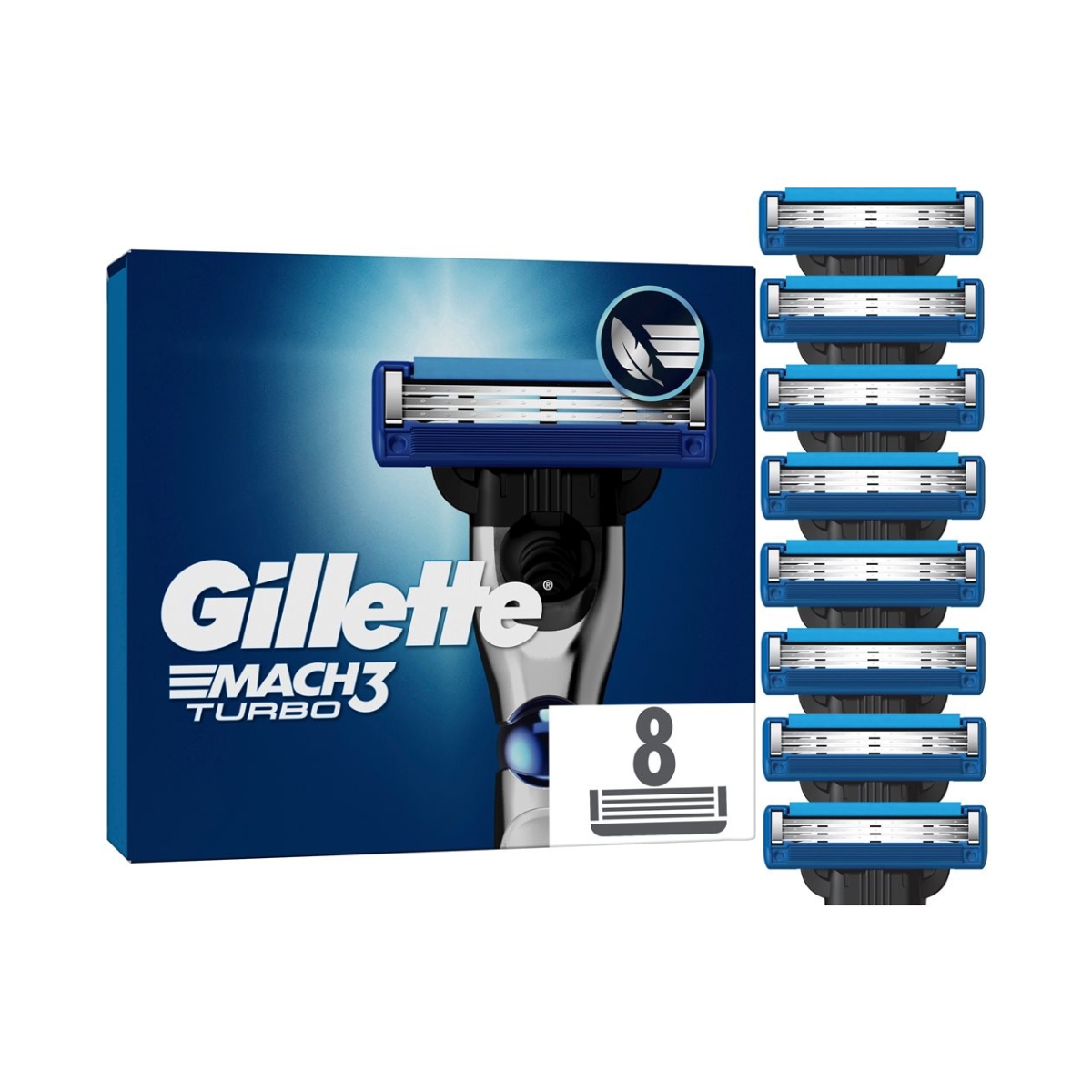 Die Gillette Mach3 Turbo Ersatzklingen für Männer verfügen über 3 DuraComfort Klingen stärker als Stahl, die länger scharf bleiben.