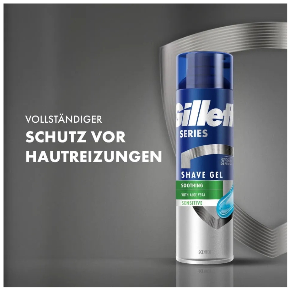 Das Gillette Series Sensitive Rasiergel ist speziell für Männer mit empfindlicher Haut entwickelt worden. Mit seiner pflegenden Formel und dem Zusatz von Aloe Vera schützt es Ihre Haut zuverlässig vor Rasurbrand,