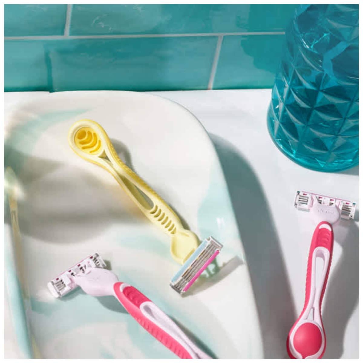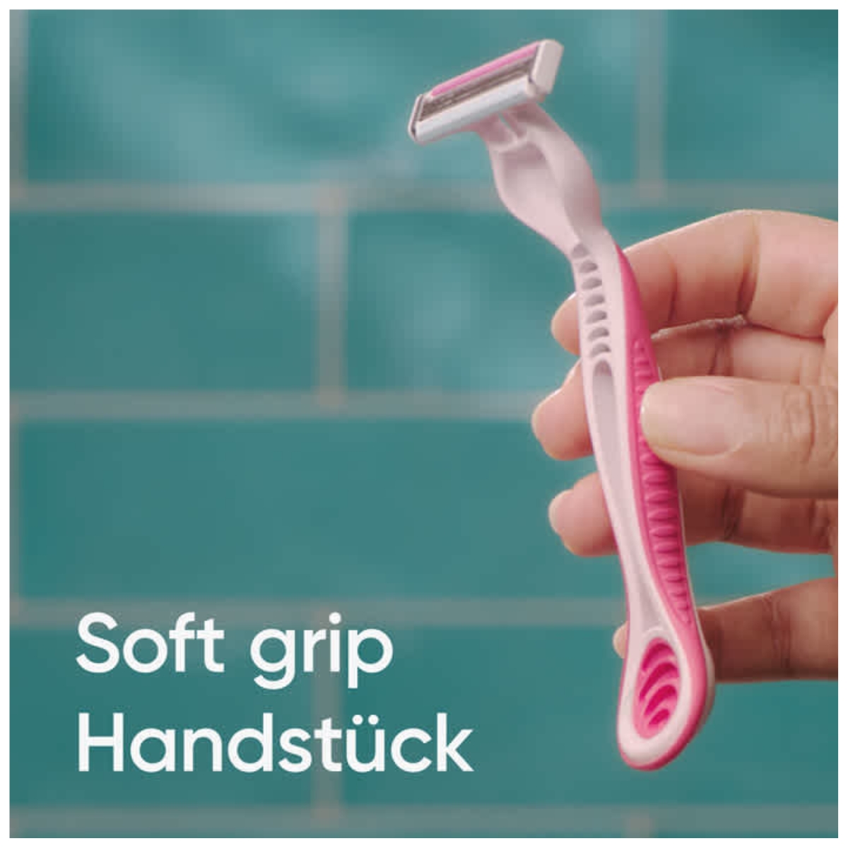 Jeder Rasierer ist mit drei hochwertigen Klingen ausgestattet, die sich den Körperkonturen anpassen und so eine effektive Haarentfernung ermöglichen. Der rutschfeste Griff sorgt für präzise Kontrolle – auch unter der Dusche.