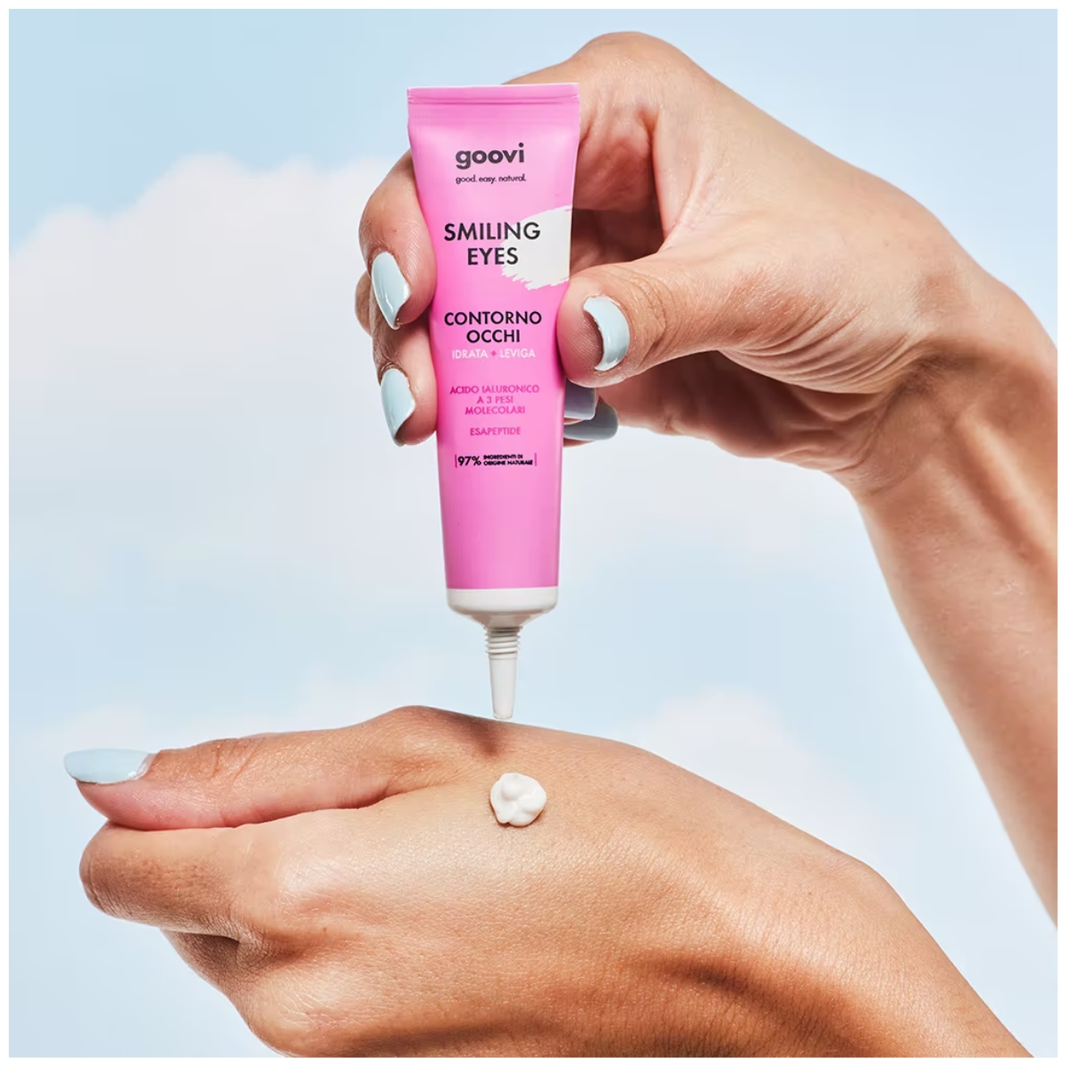 Die Goovi Smiling Eyes Augencreme spendet intensive Feuchtigkeit, mindert sichtbar feine Linien, Schwellungen und dunkle Augenringe. Die leichte, schnell einziehende Formel erfrischt müde Augen und sorgt für ein gepflegtes, strahlendes Aussehen – ideal für den täglichen Gebrauch.