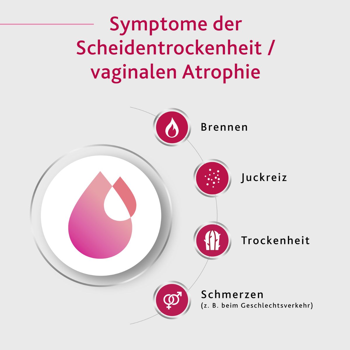 Scheidentrockenheit ist ein häufiges Problem, das viele Frauen in jedem Lebensabschnitt betreffen kann. Die Häufigkeit der Scheidentrockenheit nimmt mit dem Alter zu und kann ein Symptom der vaginalen Atrophie sein. Symptome sind Brennen, Juckreiz, Trockenheit und Schmerzen.