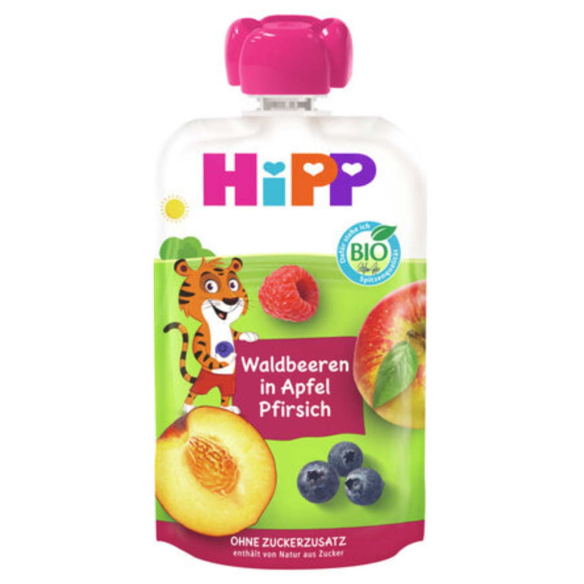 HiPP Waldbeeren Apfel-Pfirsich Thilo Tiger – Bio-Fruchtmus für Kinder