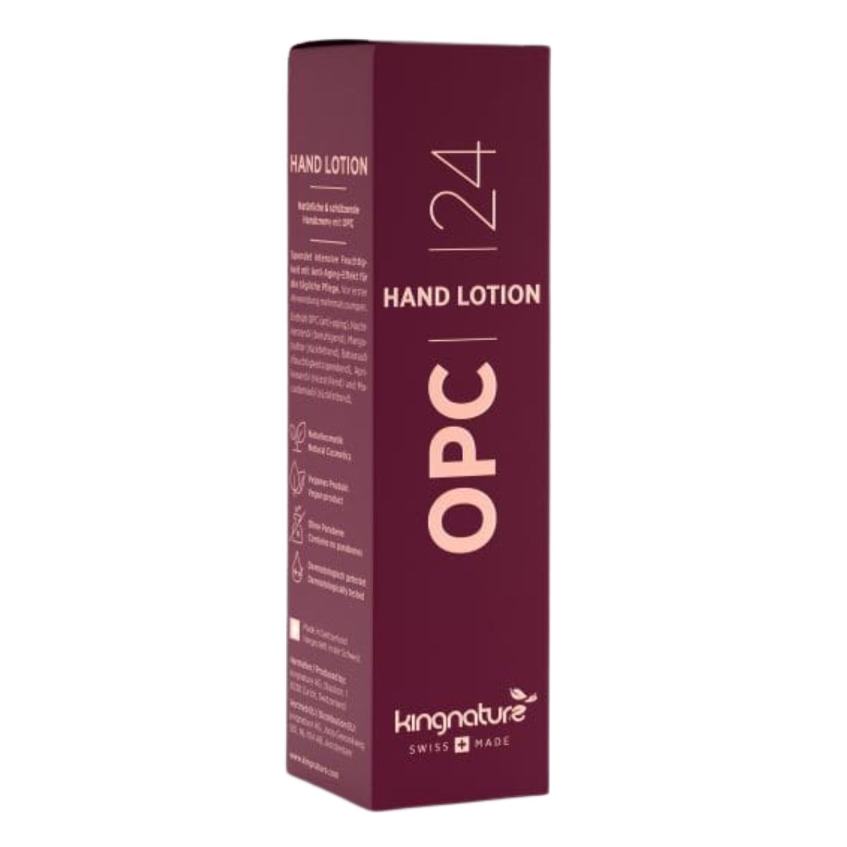 OPC 24 Handlotion für die tägliche Pflege beanspruchter Hände. Wertvolle Naturkosmetik aus natürlichen Rohstoffen, in edler Verpackung. Mit OPC aus Traubenkernextrakt (natürliches Anti-Aging), glättendem Aprikosenöl, rückfettender Mangobutter, pflegendem Macadamiaöl, nährendem Babassu-Öl und beruhigendem Nachtkerzenöl.