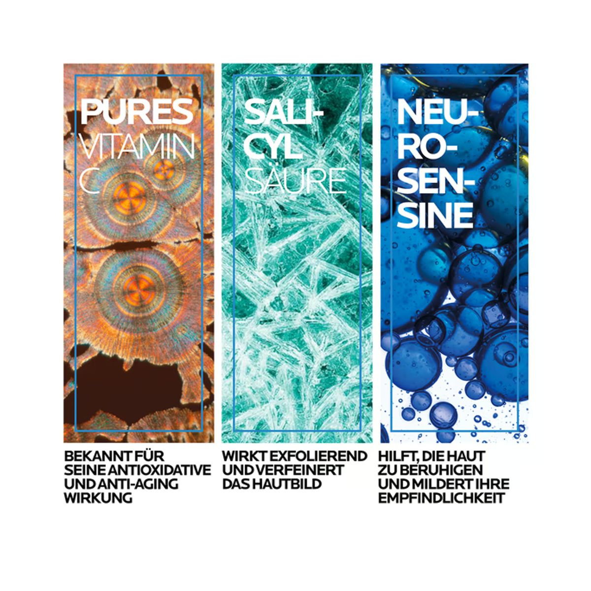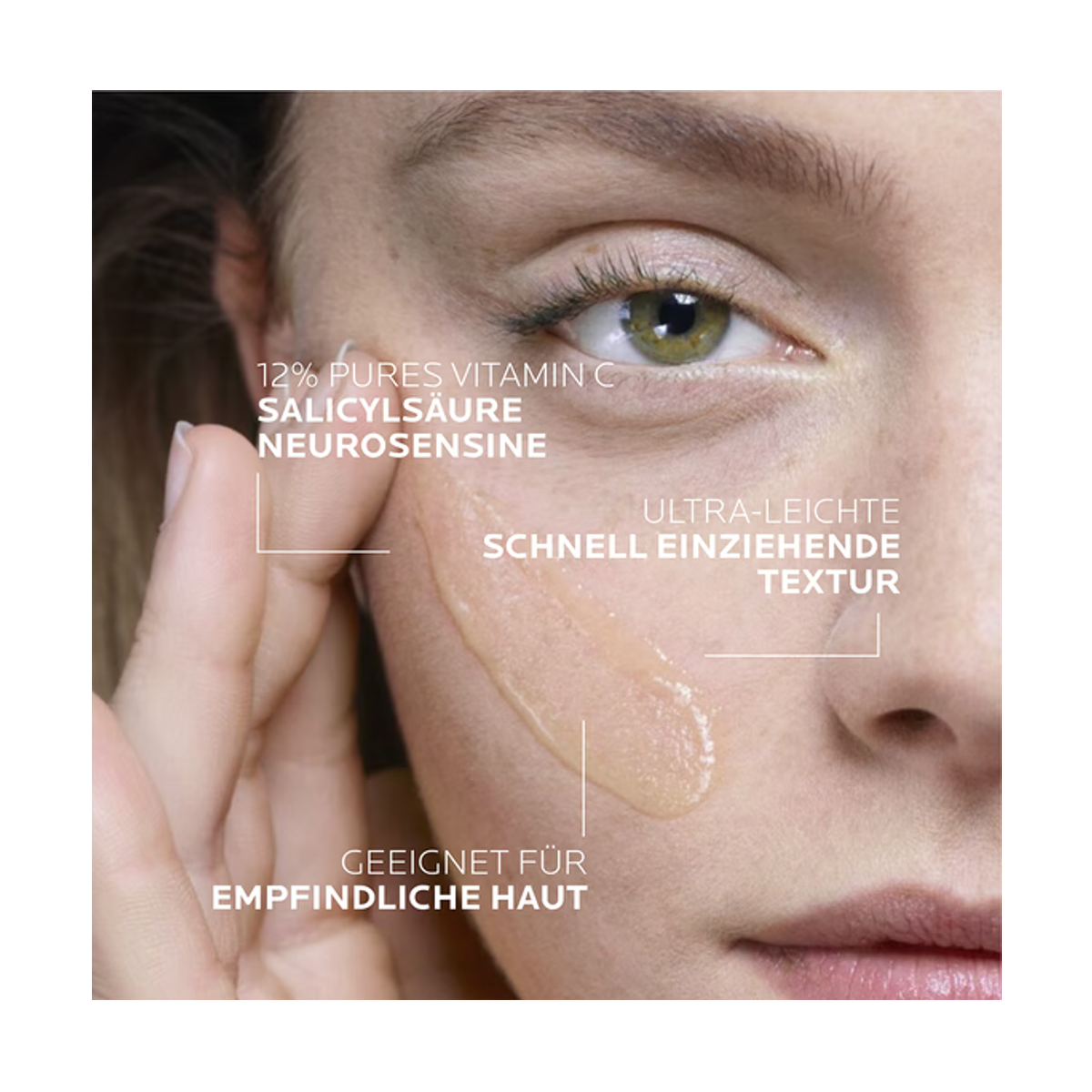 Das Ergebnis: Die Haut wirkt glatter. Beruhigende Inhaltsstoffe wie Thermalwasser aus La Roche-Posay und Neurosensinen sorgen dafür, dass das Vitamin C Serum auch bei empfindlicher Haut optimal verträglich ist. Das Serum zieht sofort ein und ist durch das geglättete Hautgefühl auch ideal als Make-up-Basis geeignet.