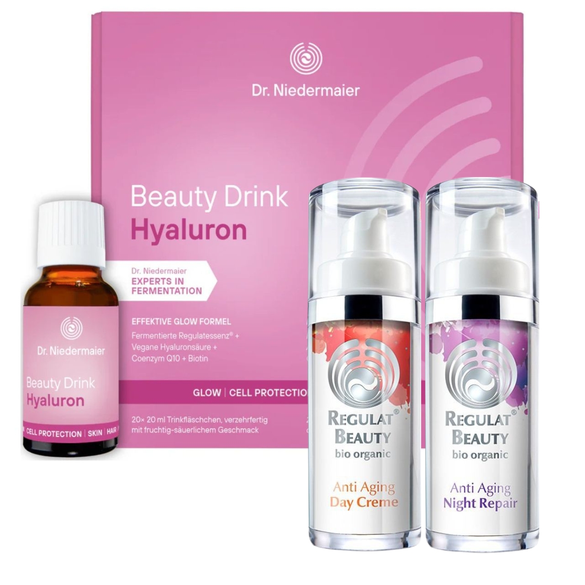 Das Geheimnis des veganen Anti-Aging Beauty Drinks Regulatpro® Hyaluron liegt in der Kraft der rein natürlichen Regulatessenz®, hergestellt nach dem weltweit einzigartigen und patentierten Verfahren der Kaskadenfermentation - dem Königsweg der Fermentationstechnologie! Über 50 beeindruckende Studien beweisen die phantastischen regulierenden Wirkungen dieser bis auf Molekülebene aufgeschlossenen Essenz.
