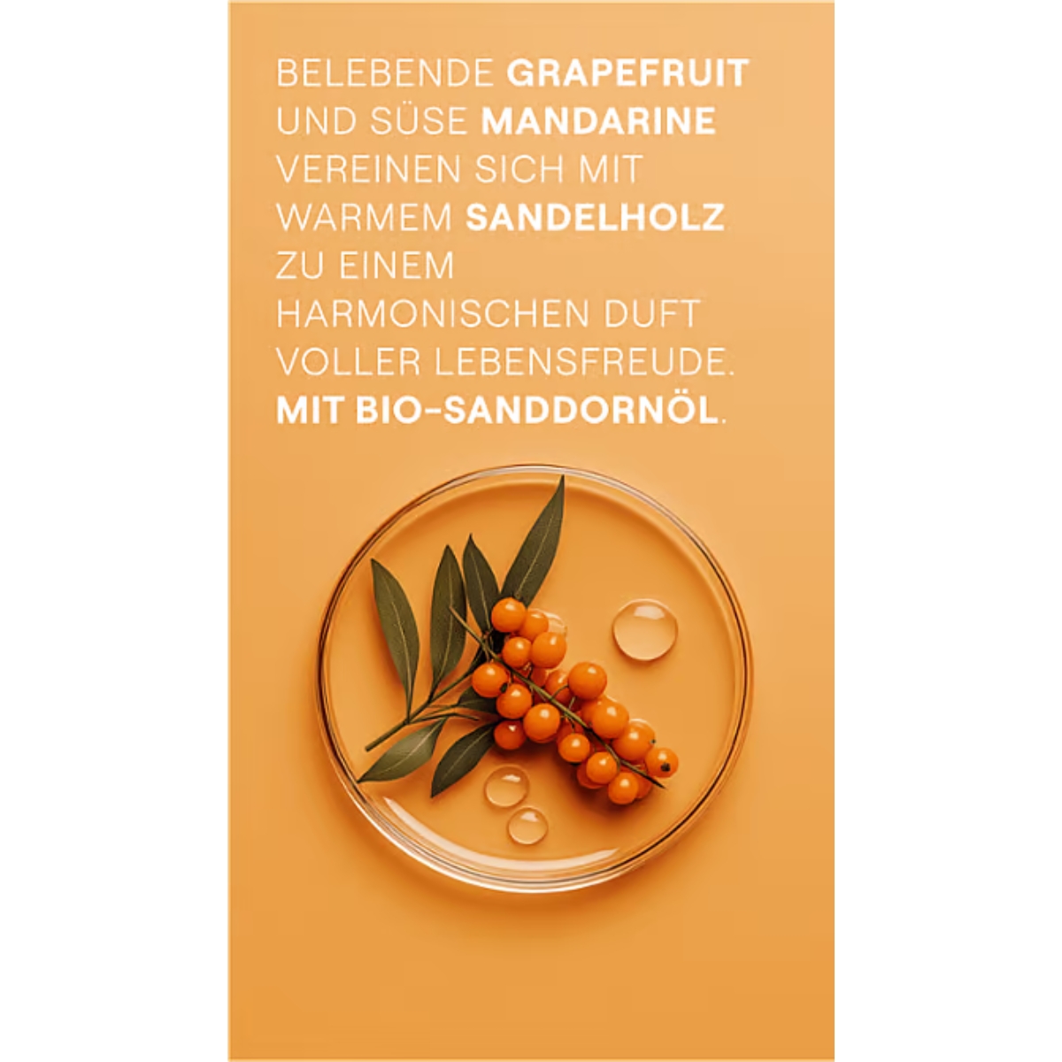 Bio-Sanddornbeeren und Bio-Sesamöl pflegen die Haut samtweich und